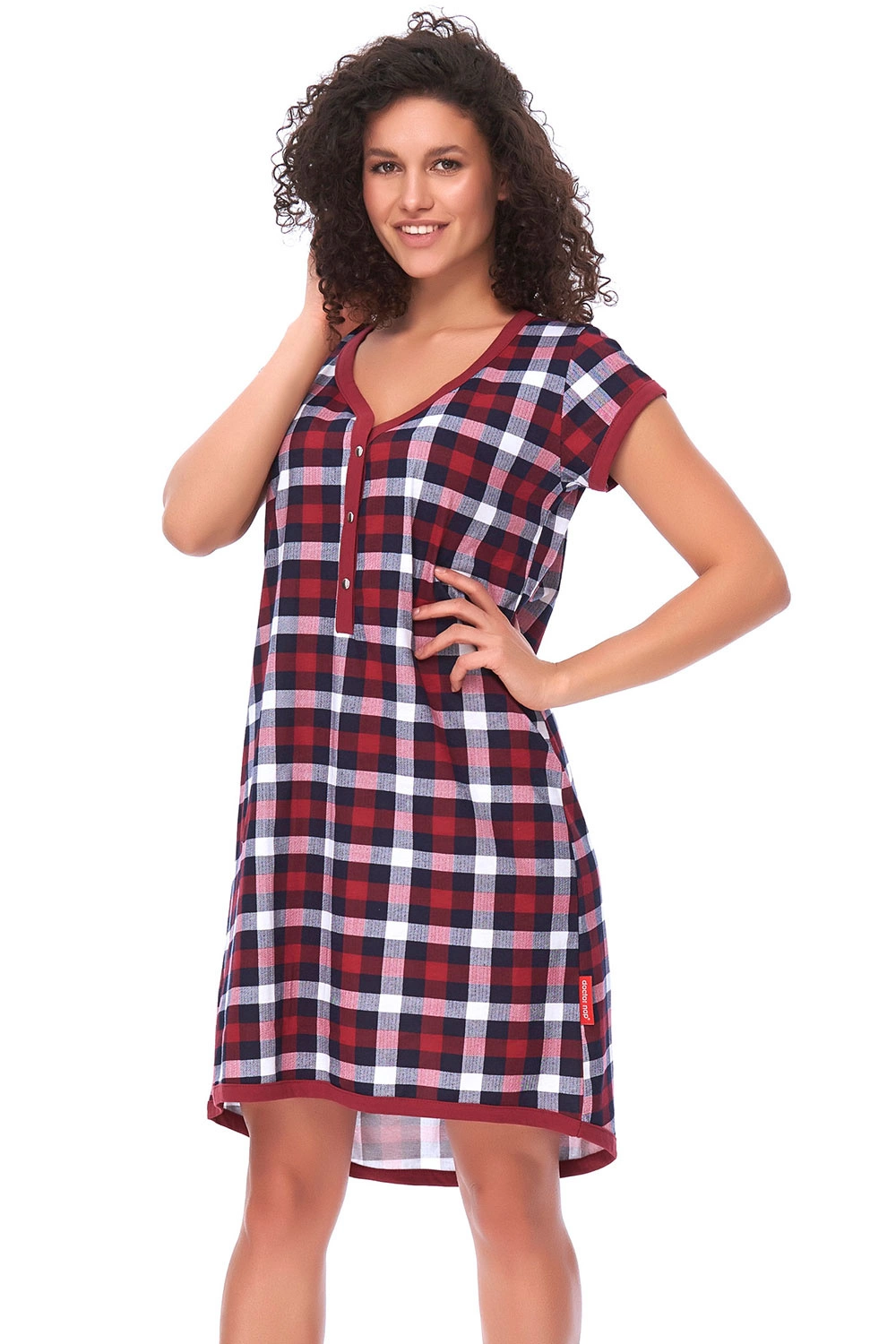 Nocna marki Doctor Nap. Model TM.9620. Produkt został wykonany z 100% bawełna. Produkt damski. Zalety produktu: ciążowa bawełniana w kratę do karmienia. Miejsce zapięcia: przód. Odzież ciążowa. Rodzaj dekoltu: w serek. Długość rękawa: krótki.