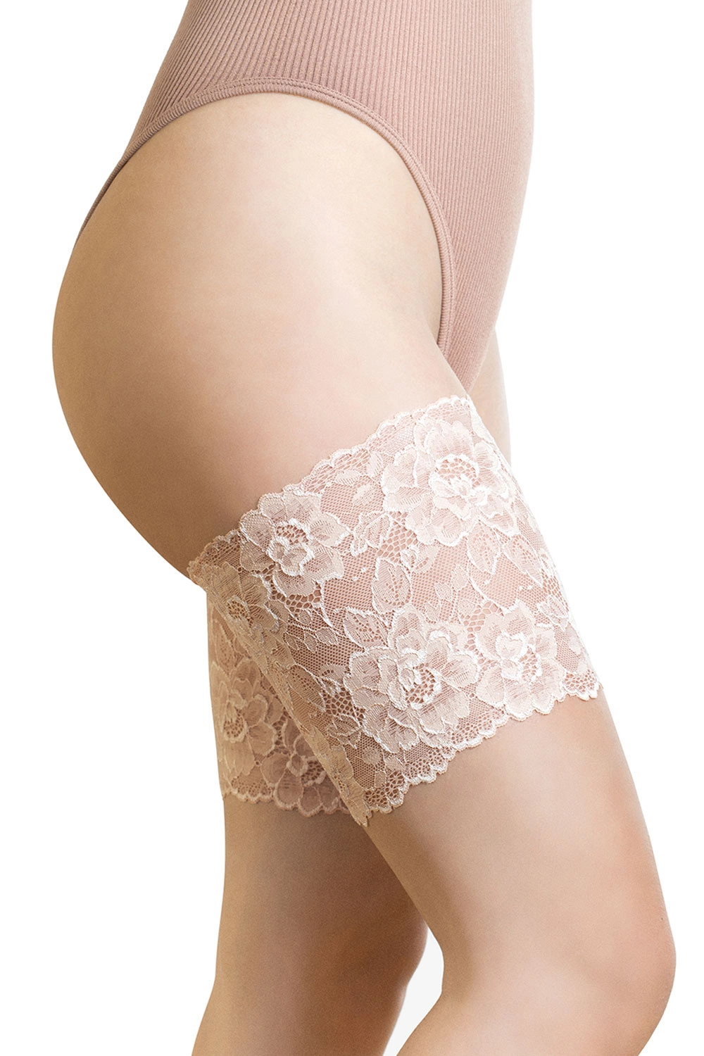 Fiore Lace Band koronkowa opaska przeciw otarciom Wyrób pończoszniczy opaski na uda, nude