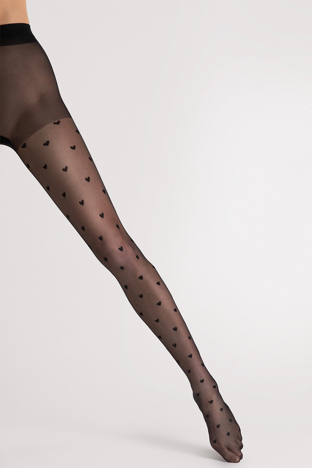Wyrób pończoszniczy marki Fiore. Model Love Potion 15 den. Produkt został wykonany z 88% poliamid, 12% elastan. Zalety produktu: seksowne w serduszka. Bez zaznaczonych palców. Grubość: 15 DEN. Produkt damski. Zaznaczona część majteczkowa.