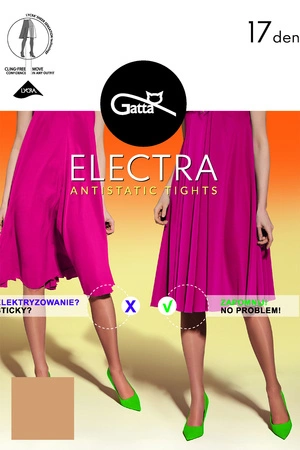Wyrób pończoszniczy marki Gatta. Model Electra. Produkt został wykonany z 90% poliamid, 10% elastan. Z zaznaczonymi palcami. Grubość: 17 DEN. Produkt damski. Zaznaczona część majteczkowa.