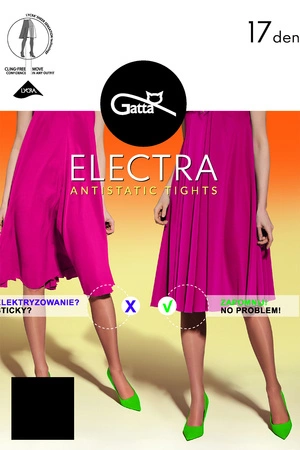 Wyrób pończoszniczy marki Gatta. Model Electra. Produkt został wykonany z 90% poliamid, 10% elastan. Z zaznaczonymi palcami. Grubość: 17 DEN. Produkt damski. Zaznaczona część majteczkowa.