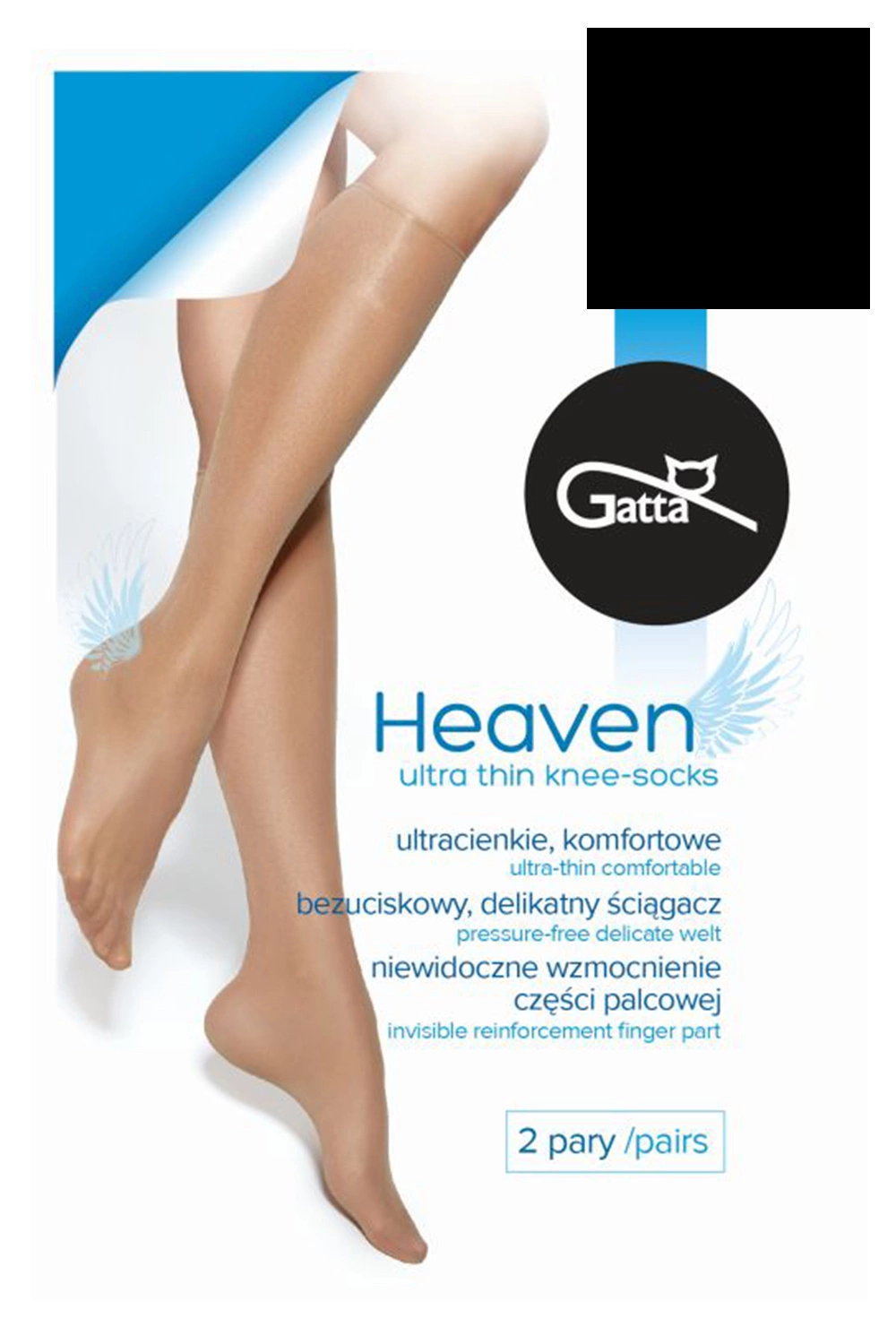Wyrób pończoszniczy marki Gatta. Model Heaven. Produkt został wykonany z 78% poliamid, 22% elastan. Zalety produktu: cienkie bezuciskowe. Bez zaznaczonych palców. Grubość: 8 DEN. Produkt damski.