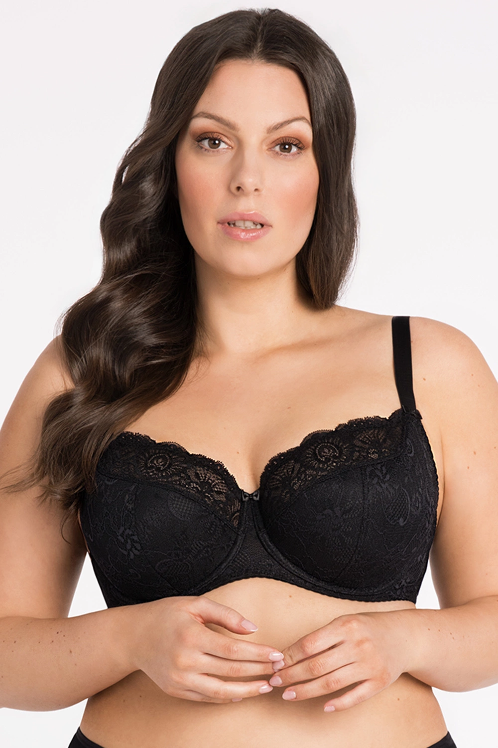 Biustonosz marki Gorsenia. Model K357 Blanca. Posiada druty, które podpierają piersi odpowiednio je kształtując. Fiszbiny pionowe osadzone na bokach. Produkt posiada regulowane ramiączka bez możliwości ich odpięcia. Haczyki do ramiączek metalowe. Biustonosz zapinany na haftki. Miejsce zapięcia: tył. Dwa rzędy haftek pionowych. Trzy stopnie haftek poziomych. Produkt został wykonany z 71% poliamid, 21% bawełna, 8% elastan. Zalety produktu: maxi size koronkowy elegancki. Produkt damski.