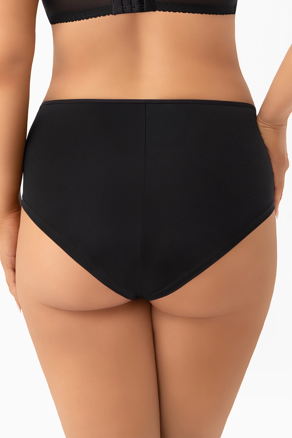 Figi Gorsenia K976 Latika to klasyczny krój o średnim stanie, łączący gładkie panele z koronkowymi wstawkami. Przód zdobi subtelna koronka na siateczce z lekkimi prześwitami, tył pozostaje gładki i kryjący. Elastyczne wykończenia dbają o dopasowanie i komfort w ciągu dnia. Model stanowi eleganckie uzupełnienie kompletów z tej linii i sprawdza się w codziennym użytkowaniu.Skład: brak danych.