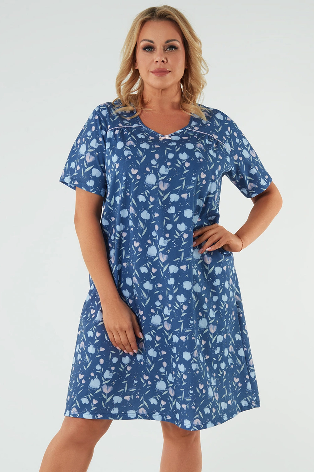 Nocna marki Italian Fashion. Model Agalia kr.r.. Produkt został wykonany z 100% bawełna. Długość rękawa: krótki. Długość: midi. Produkt damski. Rodzaj dekoltu: okrągły.