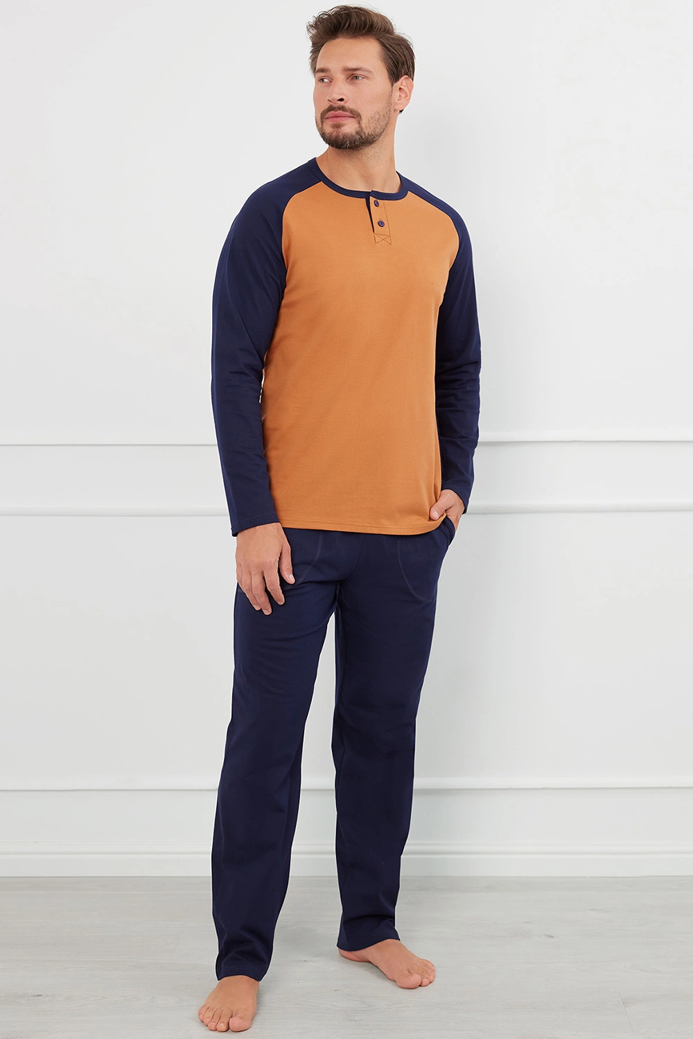 Italian Fashion Aleksander dł.r. dł.sp. Nocna piżama, koniak/granat