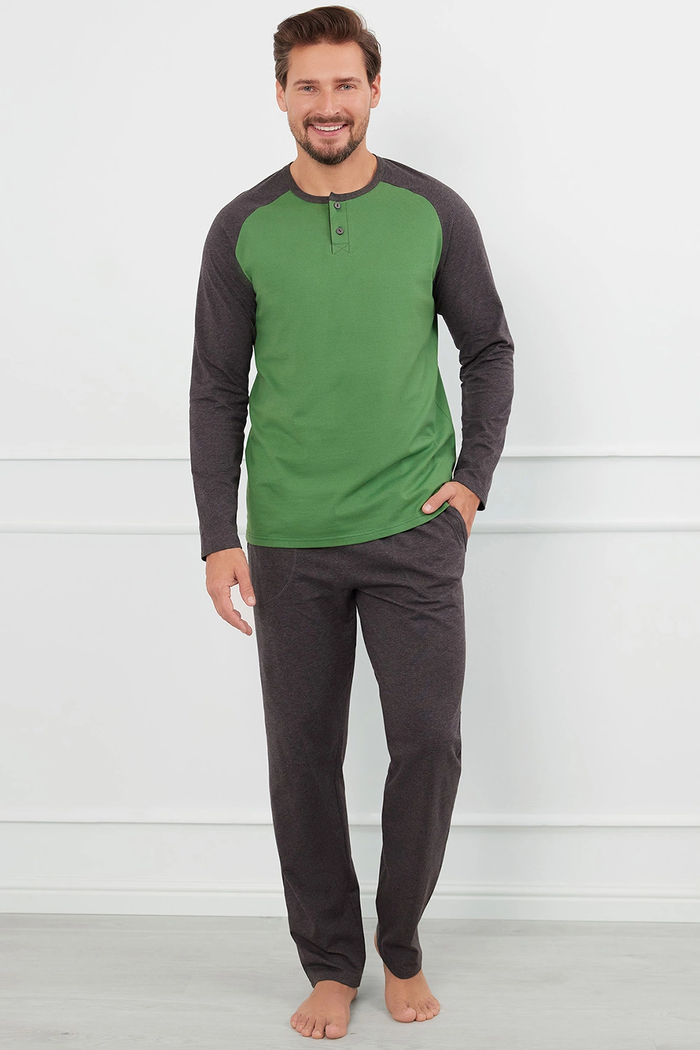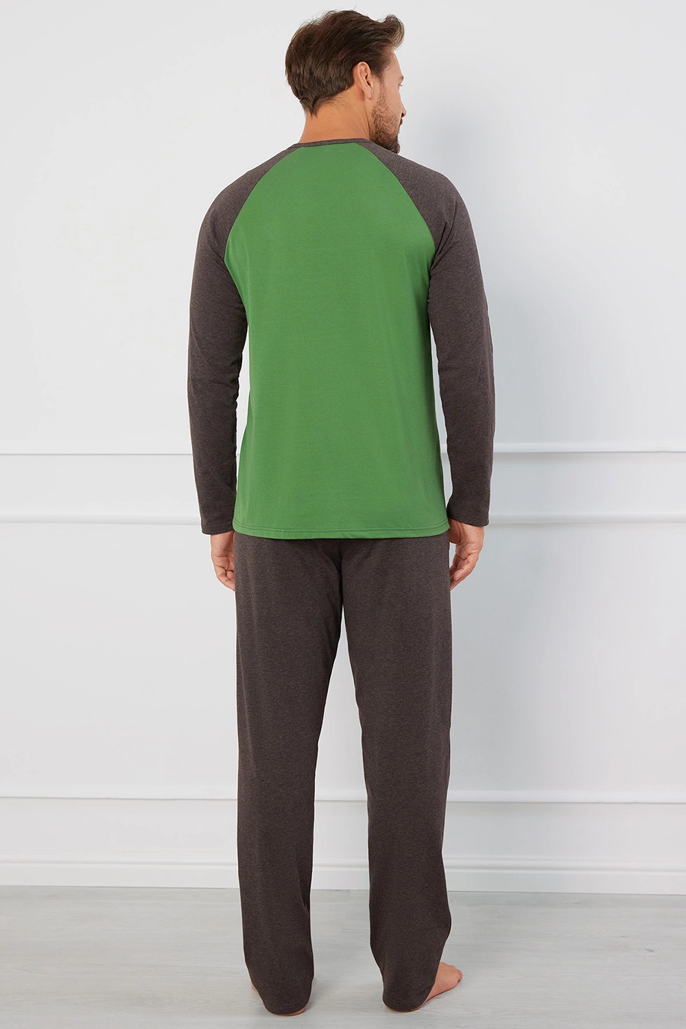 Italian Fashion Aleksander dł.r. dł.sp. Nocna piżama, zielony/c.melanż