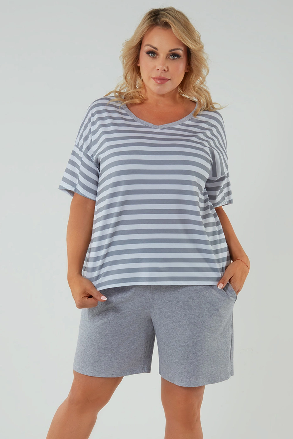 Nocna marki Italian Fashion. Model Bari kr.r. kr.sp.. Produkt został wykonany z 100% bawełna. Długość rękawa: krótki. Rodzaj dekoltu: w serek. Posiada kieszenie. Produkt damski. Długość: krótkie.