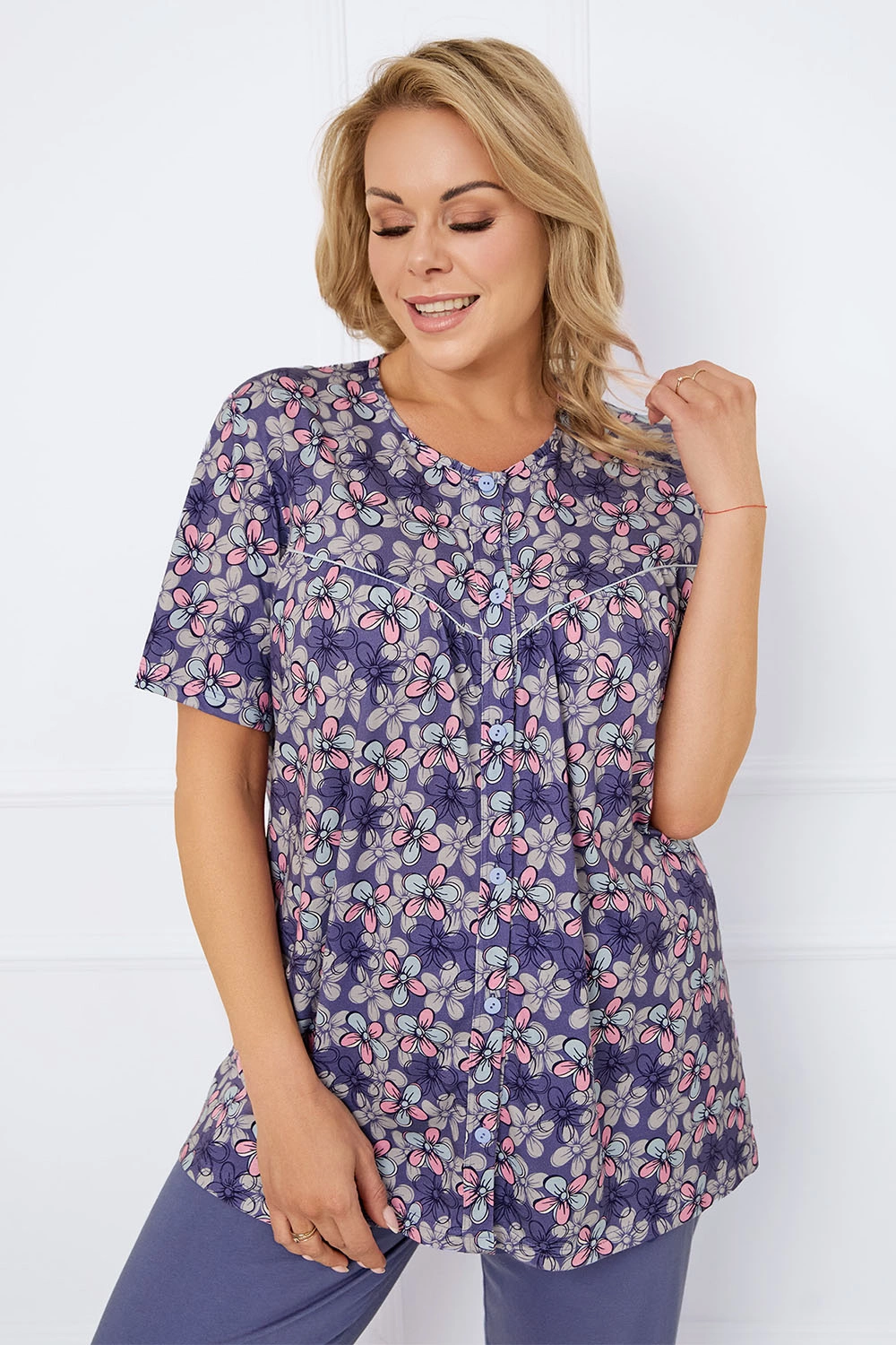 Nocna marki Italian Fashion. Model Bonaria kr.r. sp.3/4. Produkt został wykonany z 100% bawełna. Miejsce zapięcia: przód. Nocna zapinany na guziki. Produkt damski. Długość: 3/4. Długość rękawa: krótki. Rodzaj dekoltu: okrągły.