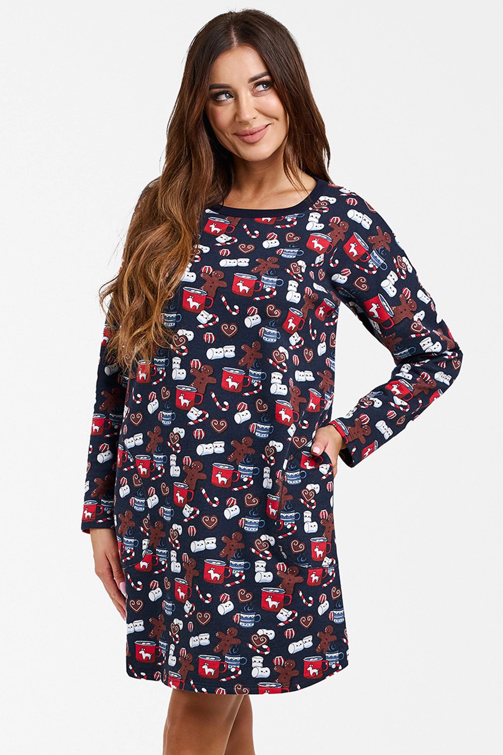 Nocna marki Italian Fashion. Model Cookies dł.r.. Produkt został wykonany z 100% bawełna. Posiada kieszenie. Długość rękawa: długi rękaw. Długość: mini. Produkt damski. Rodzaj dekoltu: okrągły.