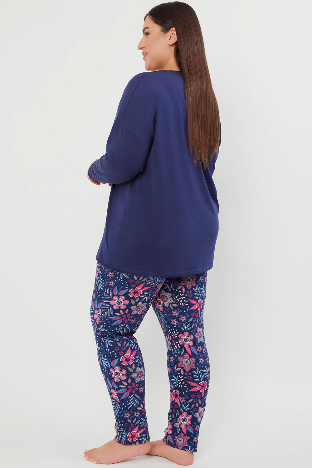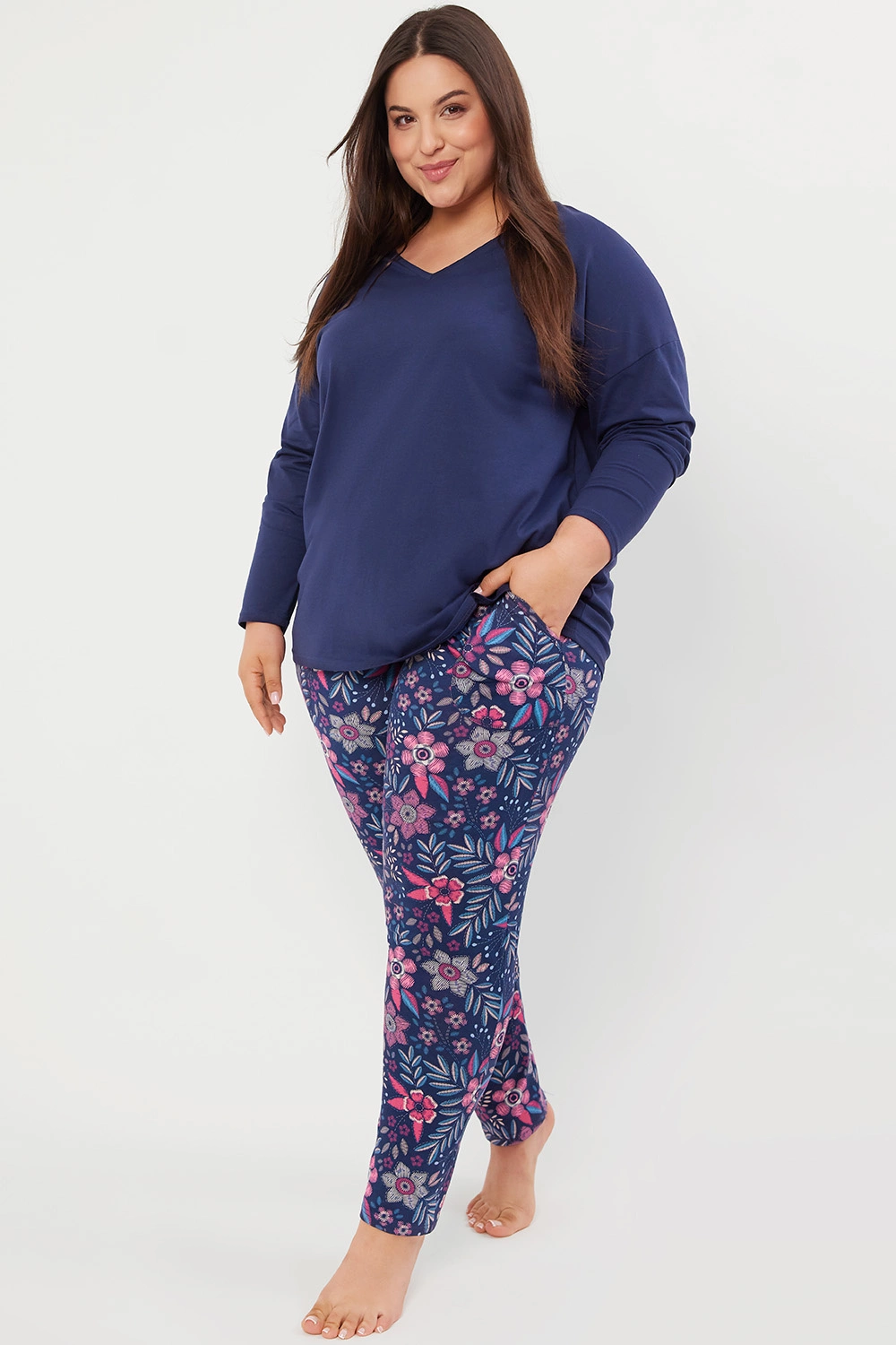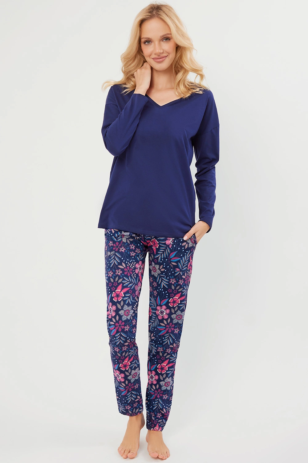 Italian Fashion Folk dł.r. dł.sp. Nocna piżama, granat/druk