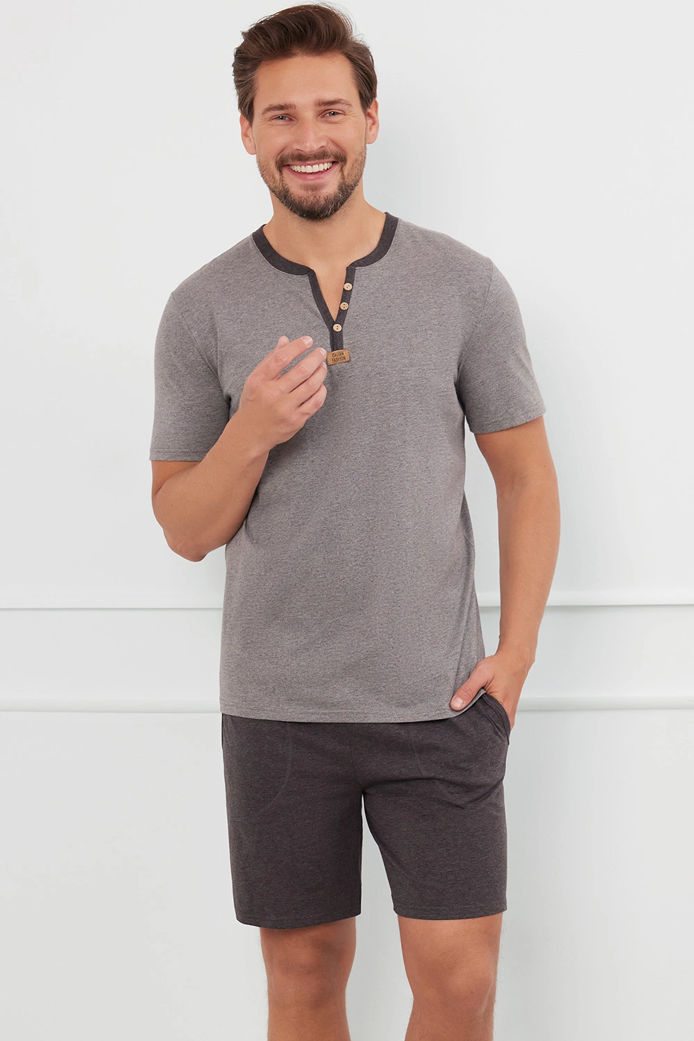 Nocna marki Italian Fashion. Model Juliusz kr.r. kr.sp.. Produkt został wykonany z 100% bawełna. Długość rękawa: krótki. Rodzaj dekoltu: w serek. Posiada kieszenie. Nocna zapinany na guziki. Miejsce zapięcia: przód. Produkt męski. Długość: krótkie.