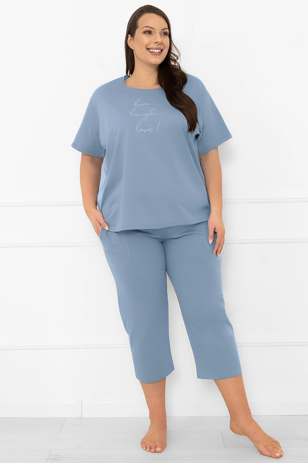 Nocna marki Italian Fashion. Model Ksara kr.r. sp.3/4. Produkt został wykonany z 100% bawełna. Posiada kieszenie. Rodzaj dekoltu: okrągły. Długość: 3/4. Produkt damski. Długość rękawa: krótki.
