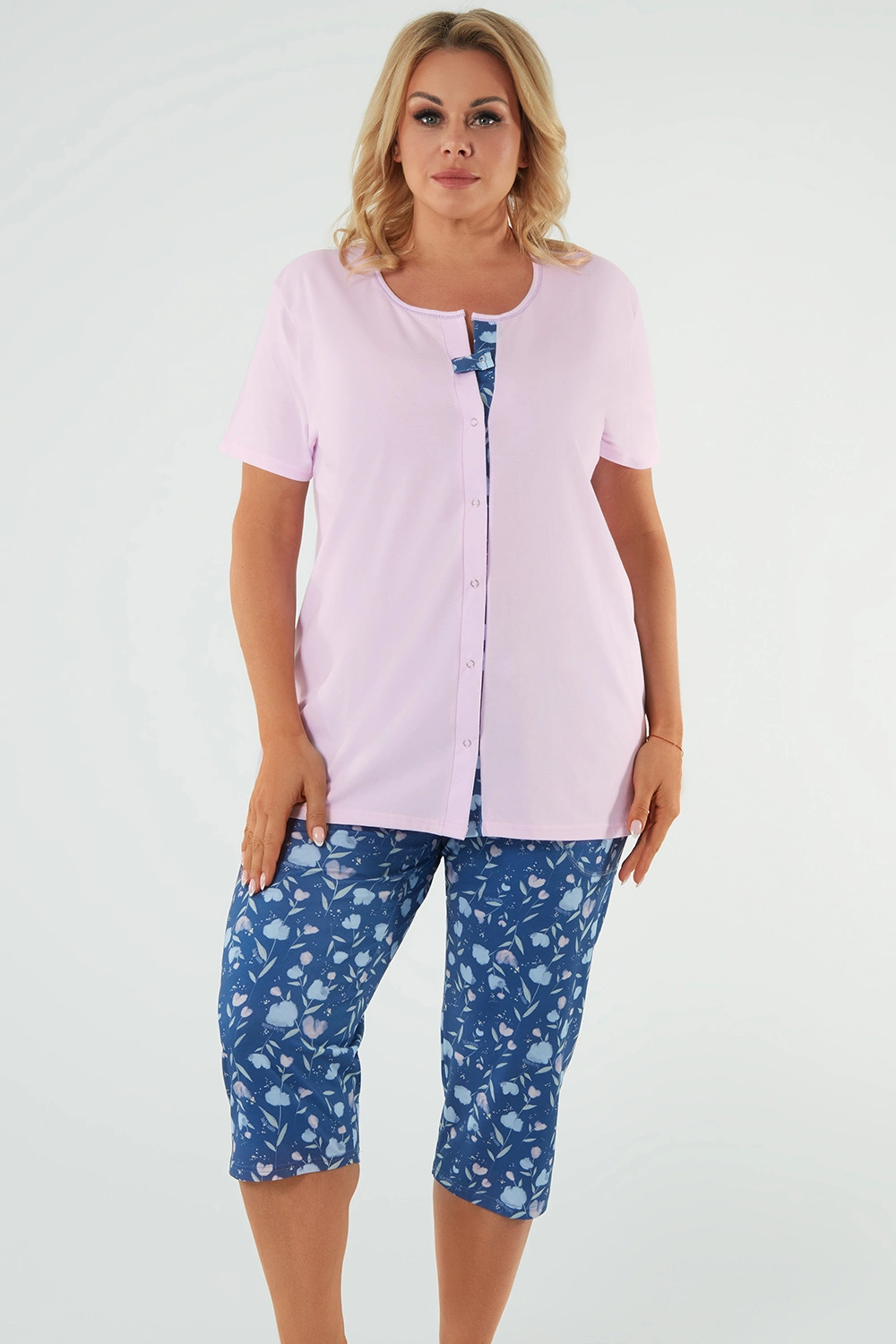 Nocna marki Italian Fashion. Model Lady kr.r. sp.3/4. Produkt został wykonany z 100% bawełna. Długość rękawa: krótki. Rodzaj dekoltu: okrągły. Odzież ciążowa. Nocna zapinany na zatrzaski. Miejsce zapięcia: przód. Produkt damski. Długość: 3/4.