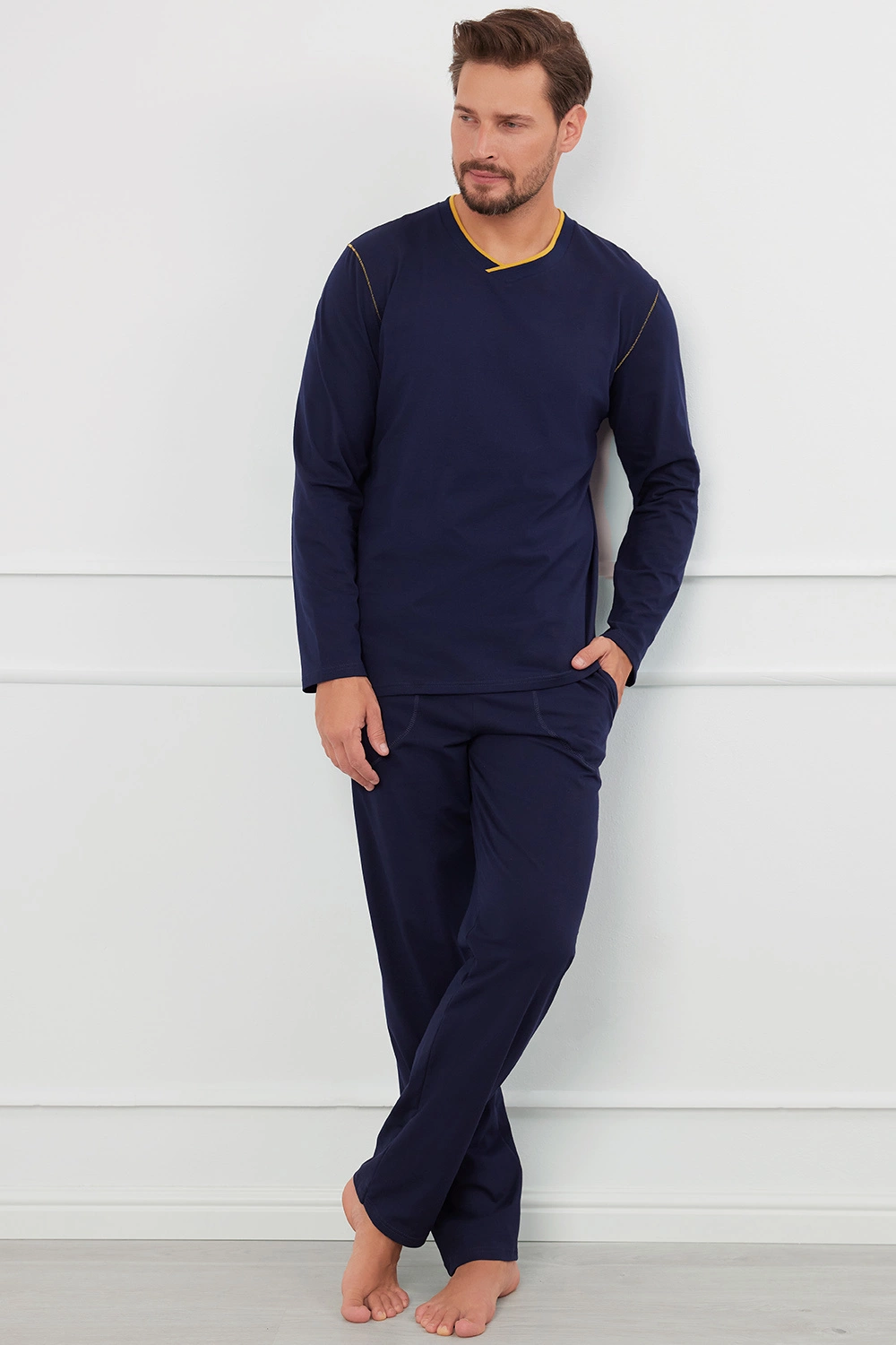 Nocna marki Italian Fashion. Model Ludwik dł.r. dł.sp.. Produkt został wykonany z 100% bawełna. Długość rękawa: długi rękaw. Rodzaj dekoltu: w serek. Posiada kieszenie. Produkt męski. Długość: długie.