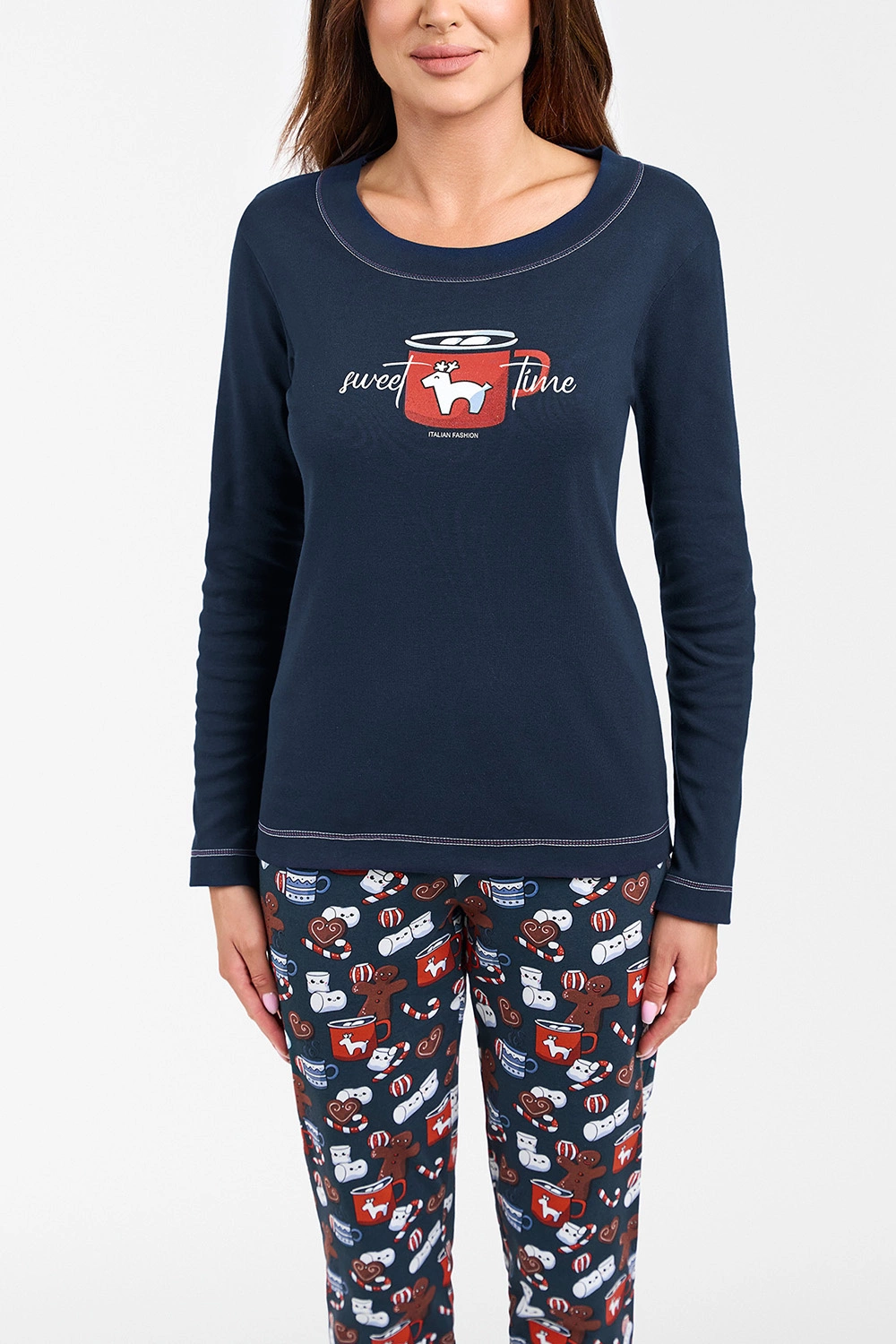 Italian Fashion Makala dł.r. dł.sp. Nocna piżama, granat/druk