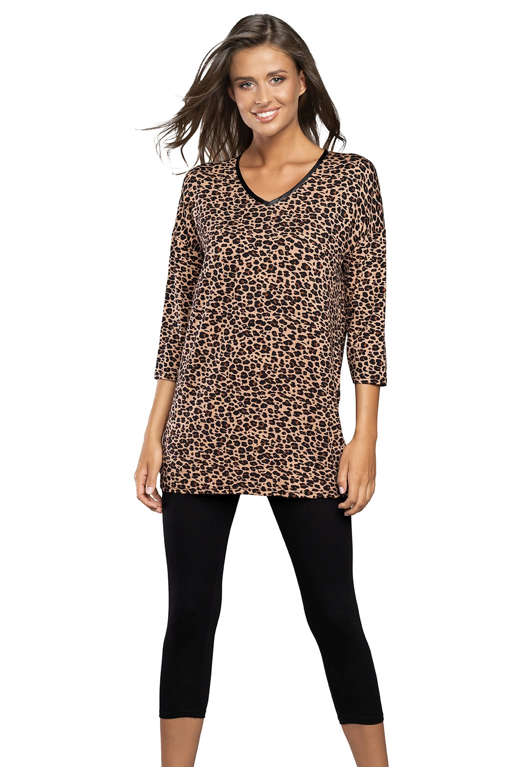 Nocna marki Italian Fashion. Model Pantera r.3/4 sp.3/4. Produkt został wykonany z 90% wiskoza, 10% elastan. Długość rękawa: 3/4. Długość: 3/4. Produkt damski. Rodzaj dekoltu: w serek.