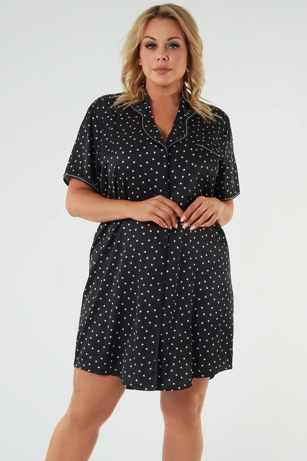 Nocna marki Italian Fashion. Model Ria kr.r.. Produkt został wykonany z 100% poliester. Miejsce zapięcia: przód. Nocna zapinany na zatrzaski. Długość rękawa: krótki. Długość: mini. Produkt damski.