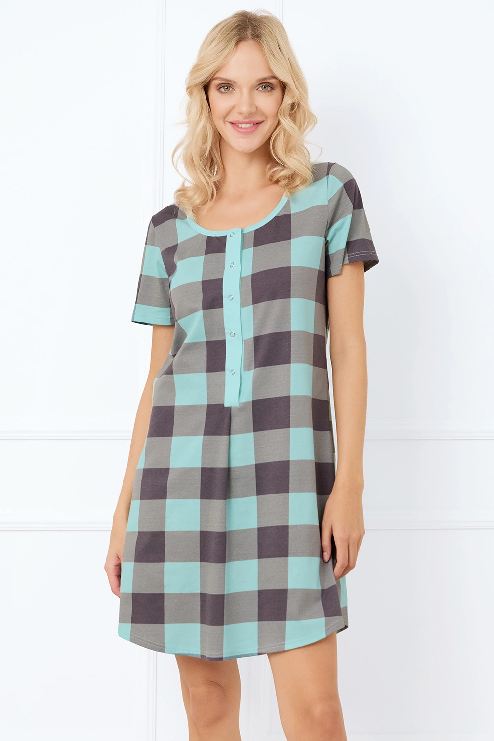 Italian Fashion Sandra kr.r. Nocna koszula, druk turkus