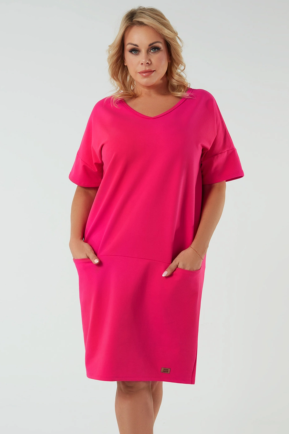 Sukienka marki Italian Fashion. Model Stella kr.r.. Produkt został wykonany z 95% bawełna, 5% elastan. Posiada kieszenie. Długość rękawa: krótki. Długość: midi. Produkt damski. Rodzaj dekoltu: w serek.