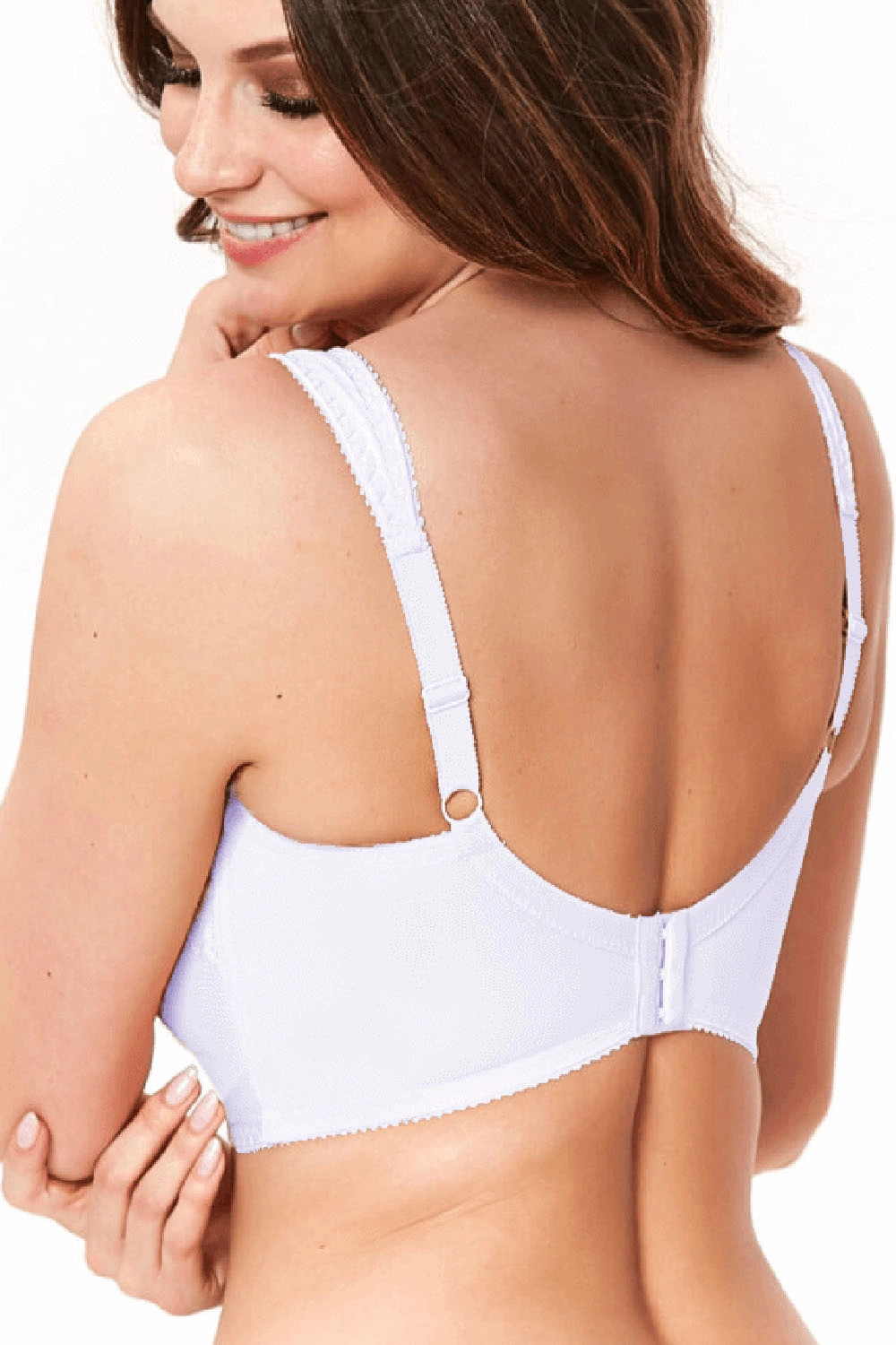 Biustonosz marki Kostar. Model 305. Produkt posiada regulowane ramiączka bez możliwości ich odpięcia. Haczyki do ramiączek metalowe. Biustonosz zapinany na haftki. Miejsce zapięcia: tył. Produkt został wykonany z 60% poliamid, 25% bawełna, 15% elastan. Produkt posiada kieszonki na wkładki. Produkt damski.