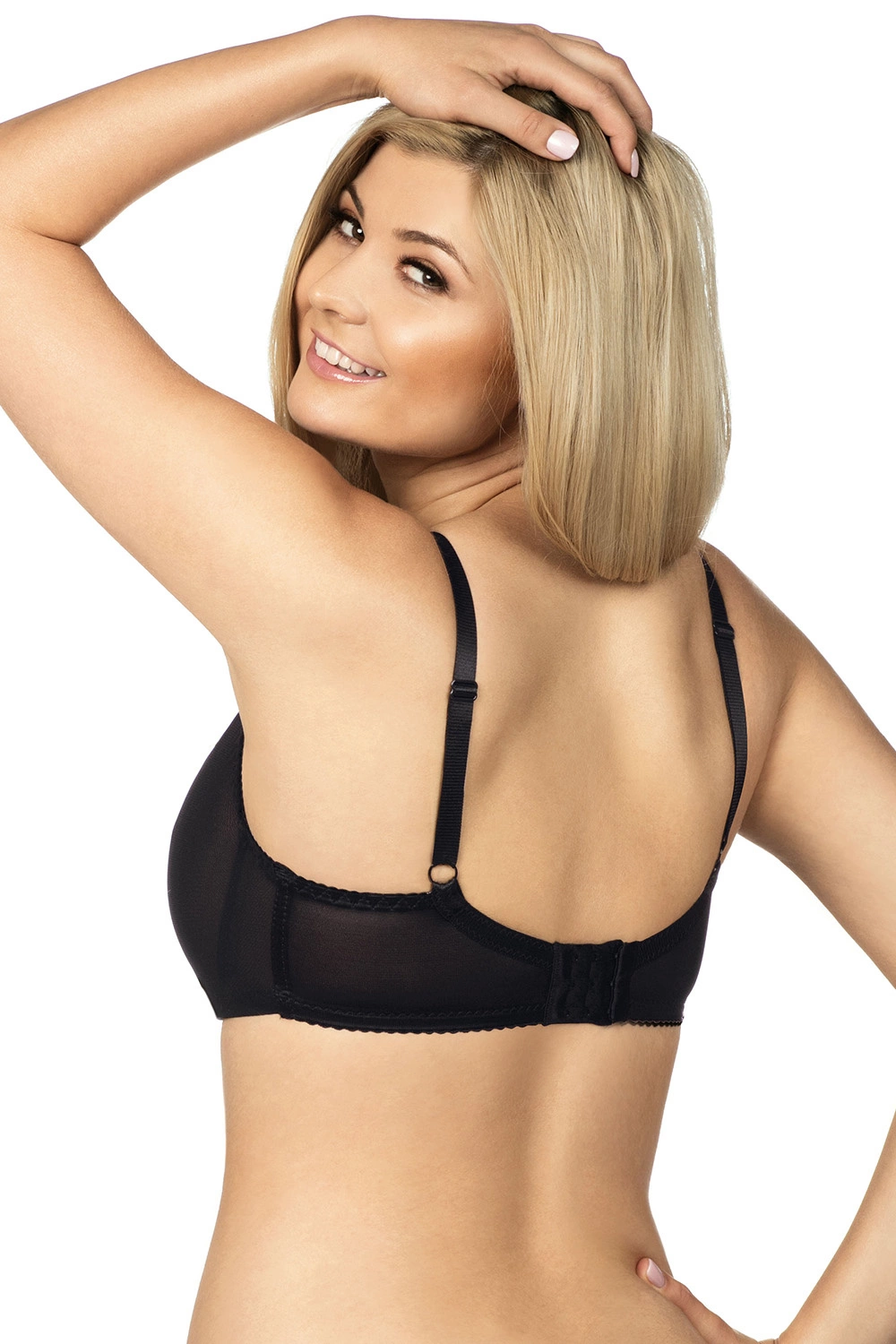 Biustonosz marki Lupo. Model 131. Posiada druty, które podpierają piersi odpowiednio je kształtując. Fiszbiny pionowe osadzone na bokach. Produkt posiada regulowane ramiączka bez możliwości ich odpięcia. Biustonosz zapinany na haftki. Miejsce zapięcia: tył. Dwa rzędy haftek pionowych. Trzy stopnie haftek poziomych. Produkt został wykonany z 85% poliamid, 15% elastan. Produkt damski. Zalety produktu: 2 w 1 top z siateczki.
