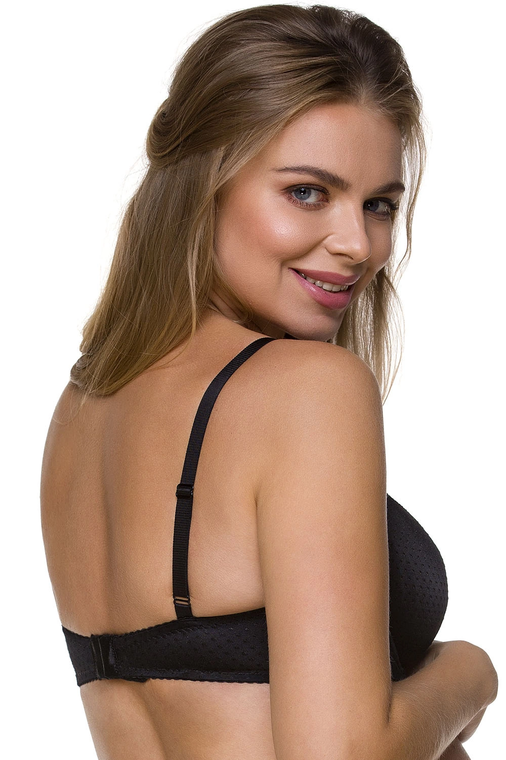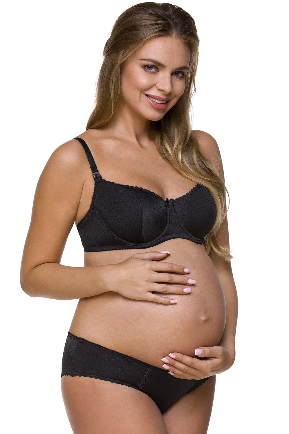 Biustonosz marki Lupo. Model 1381. Posiada druty, które podpierają piersi odpowiednio je kształtując. Produkt posiada regulowane ramiączka bez możliwości ich odpięcia. Haczyki do ramiączek plastikowe. Biustonosz zapinany na haftki. Miejsce zapięcia: tył. Dwa rzędy haftek pionowych. Trzy stopnie haftek poziomych. Produkt został wykonany z 70% poliamid, 15% elastan, 15% bawełna. Odzież ciążowa. Produkt damski. Zalety produktu: miękki ciążowy do karmienia soft. Bielizna ma odpinaną miseczkę.