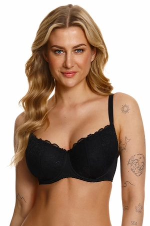 Biustonosz marki Lupo. Model 152. Posiada druty, które podpierają piersi odpowiednio je kształtując. Fiszbiny pionowe osadzone na bokach. Produkt posiada regulowane ramiączka bez możliwości ich odpięcia. Haczyki do ramiączek metalowe. Biustonosz zapinany na haftki. Miejsce zapięcia: tył. Produkt został wykonany z 70% poliamid, 20% elastan, 10% bawełna. Produkt damski.