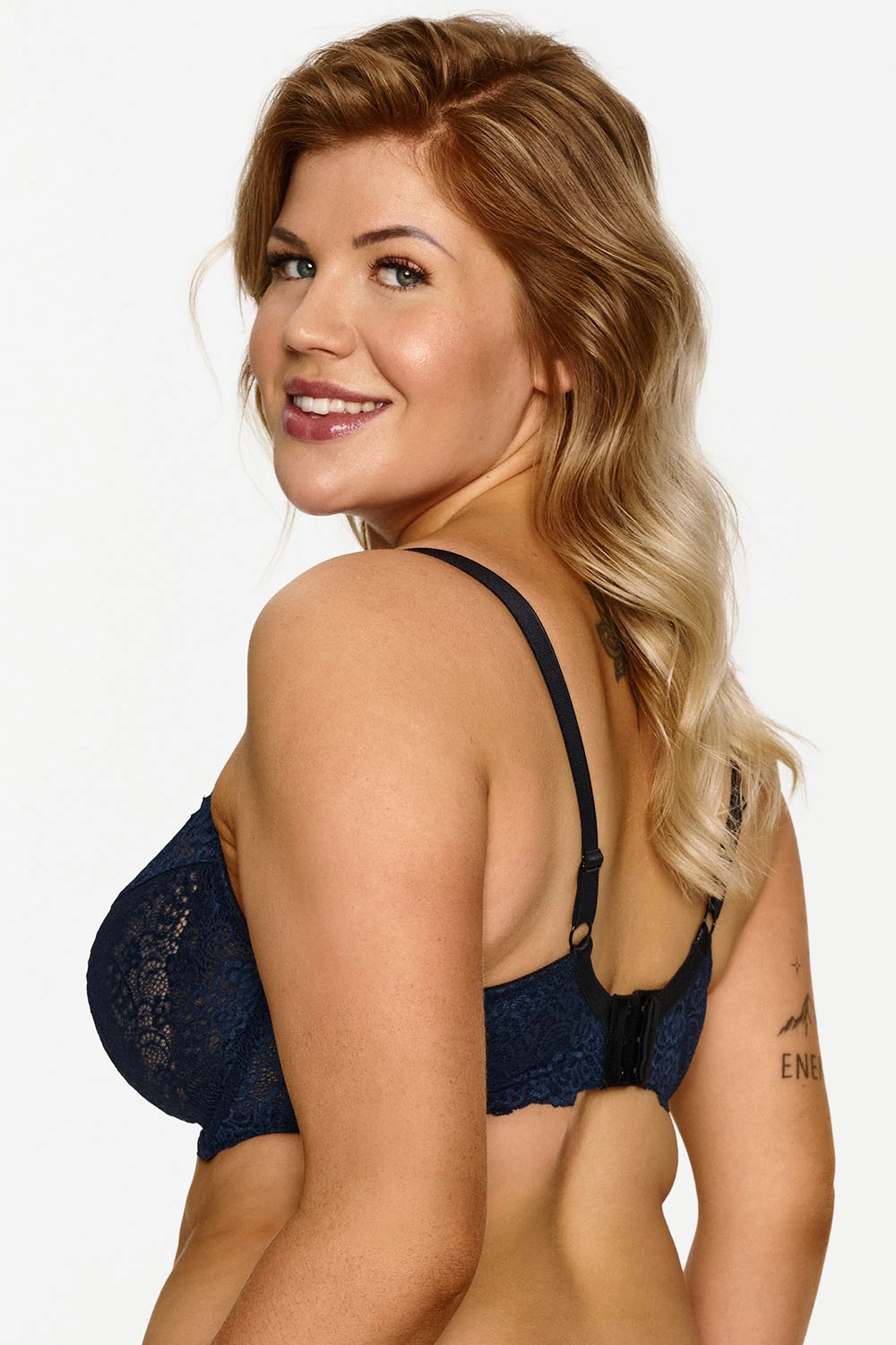 Biustonosz marki Lupo. Model 2619 BIG. Posiada druty, które podpierają piersi odpowiednio je kształtując. Produkt posiada regulowane ramiączka bez możliwości ich odpięcia. Haczyki do ramiączek metalowe. Biustonosz zapinany na haftki. Miejsce zapięcia: tył. Produkt został wykonany z 85% poliamid, 15% elastan. Produkt damski.