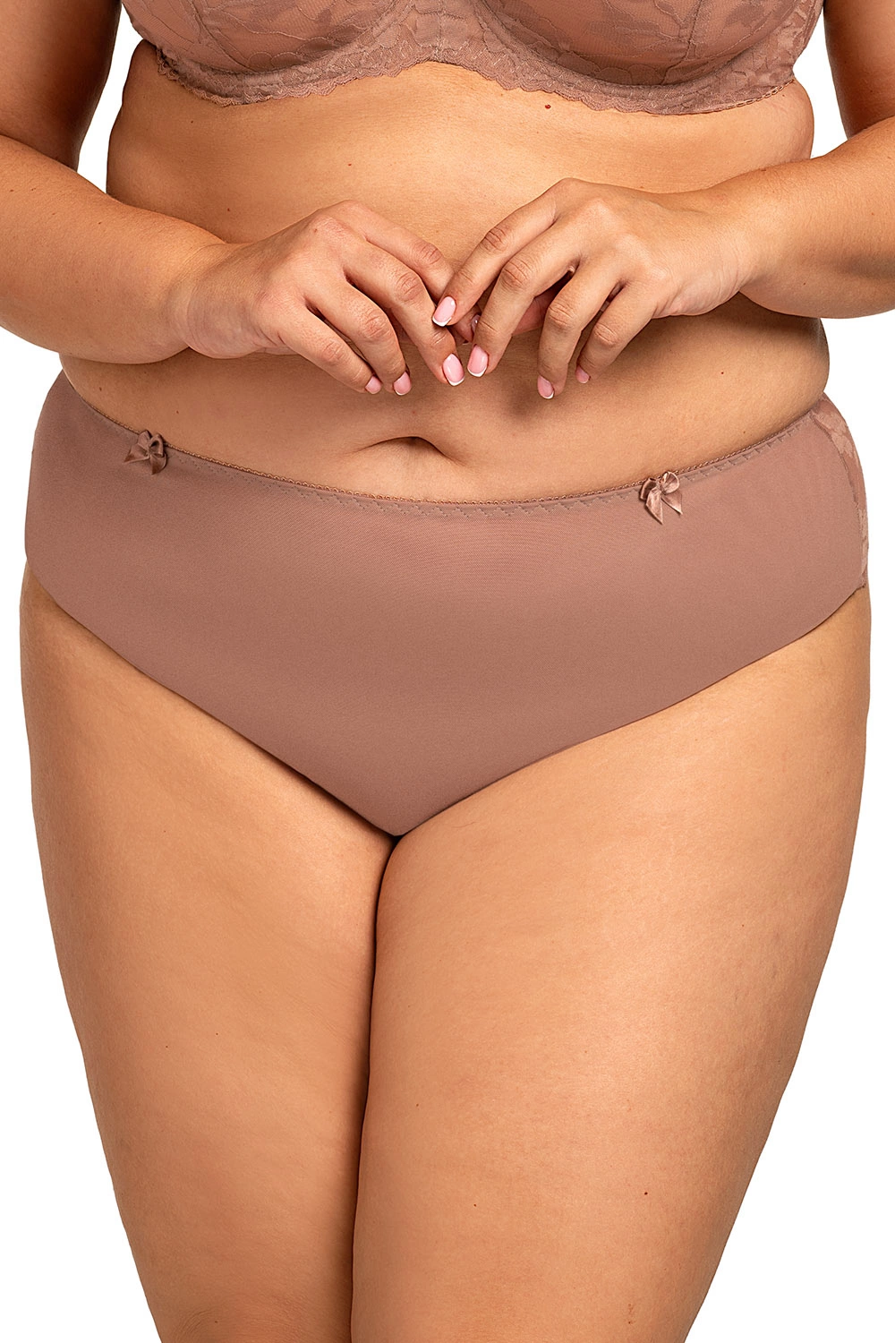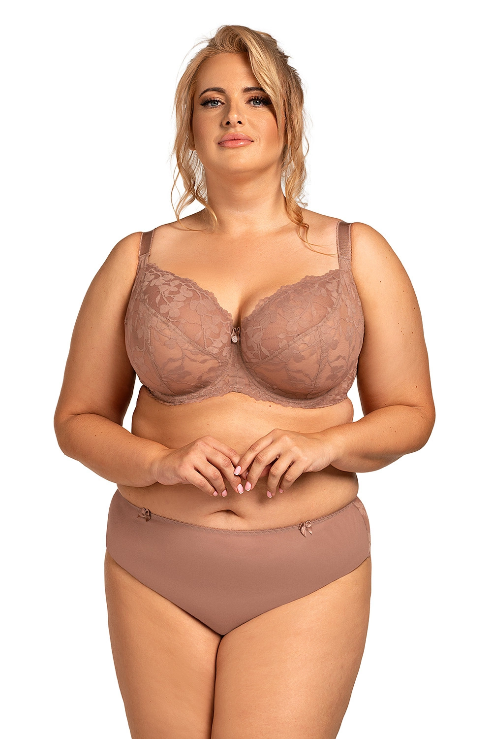 Klasyczne figi Nessa Ana N01 w całości uszyte z elastycznej, miękkiej koronki. Roślinny motyw koronki z subtelnymi prześwitami nadaje lekkości. Gładko wykończona talia i falujące, koronkowe brzegi nogawek dbają o komfort. Tył z tej samej koronki, spójny z przodem. Model praktyczny na co dzień i estetyczny w komplecie z koronkową górą.Skład: poliamid 85%, elastan 15%.