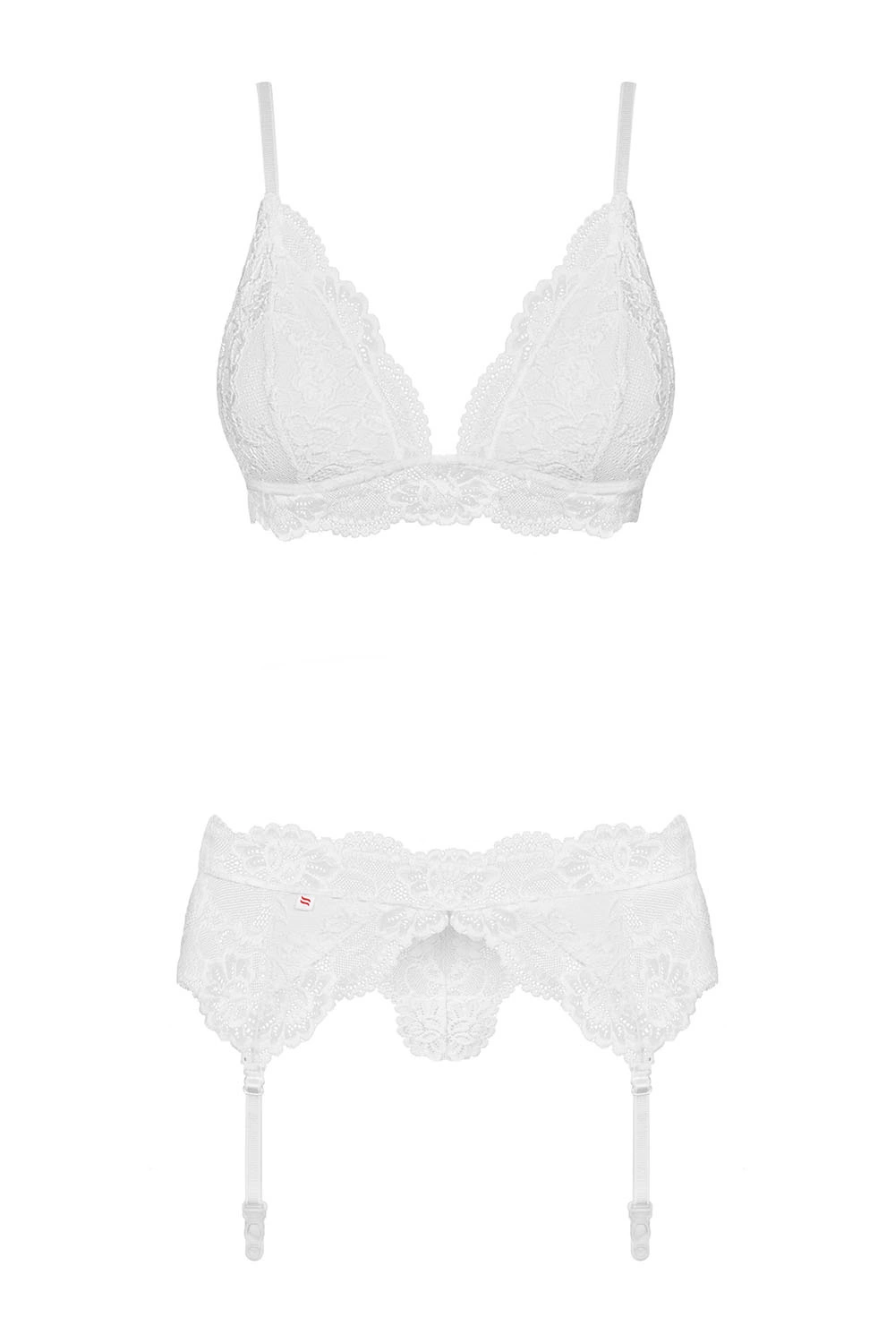 Obsessive 810-SEG-2 Nocna komplet biustonosz + stringi + pas do pończoch, biały