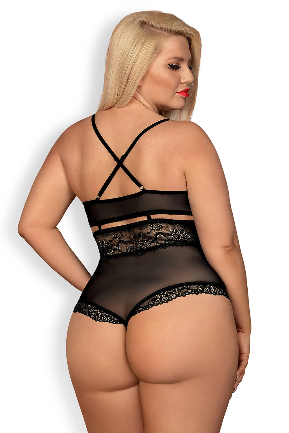 Body marki Obsessive. Model 838-TED-1. Produkt został wykonany z 90% poliamid, 10% elastan. Produkt posiada regulowane ramiączka bez możliwości ich odpięcia. Produkt damski. Bielizna wyróżnia się rozcięciem w kroku. Zalety produktu: sexy hot na randkę noc.