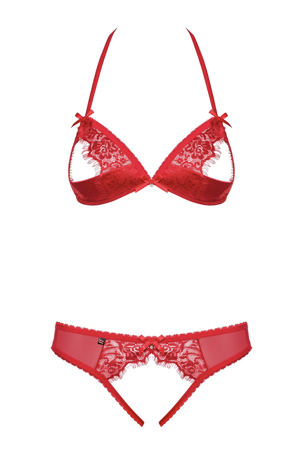 Obsessive 870-SEC-3 Nocna komplet biustonosz + stringi, czerwony