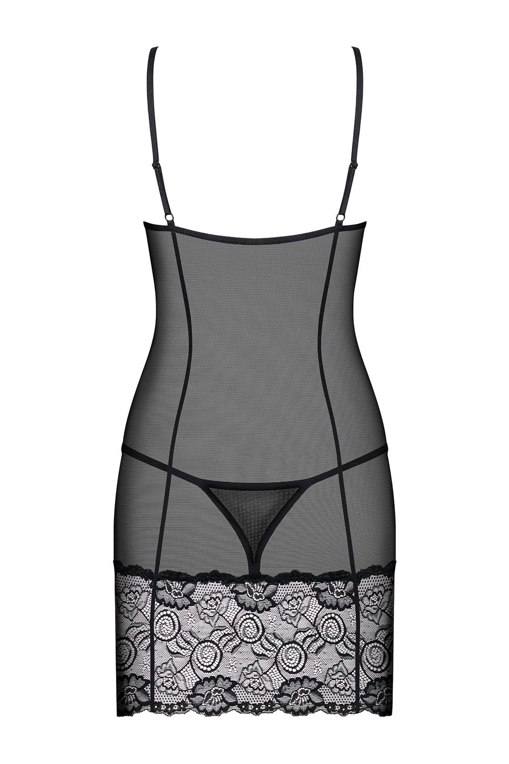 Obsessive Alluria chemise Nocna komplet koszulka + stringi, czarny