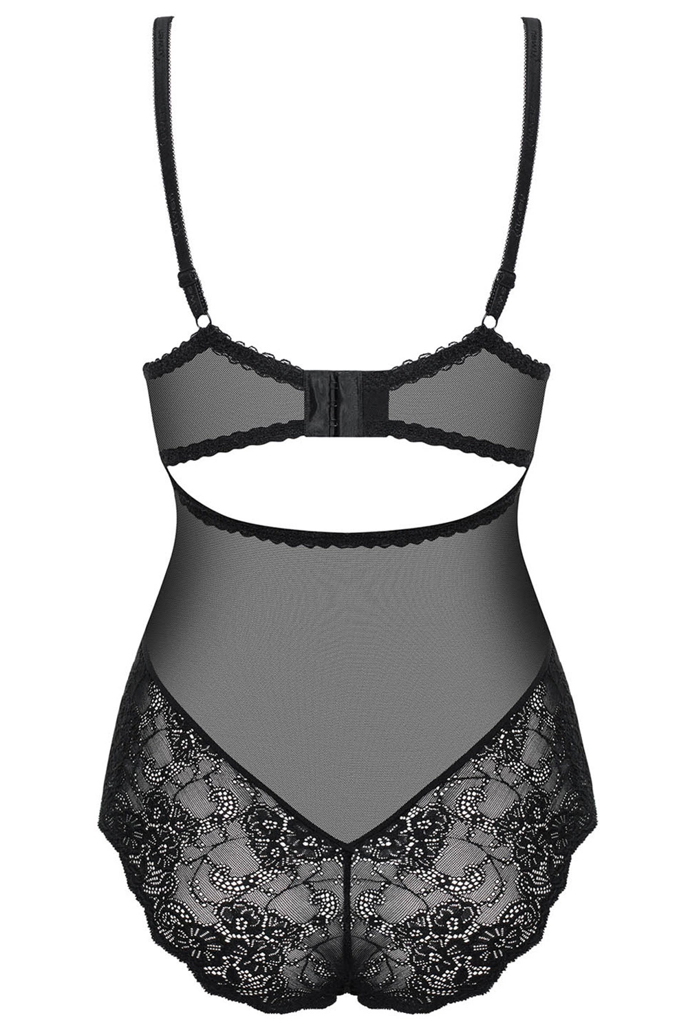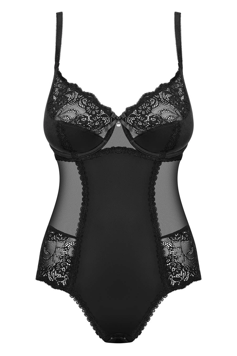 Body marki Obsessive. Model Amallie teddy. Posiada druty, które podpierają piersi odpowiednio je kształtując. Body zapinany na haftki. Produkt został wykonany z 94% poliamid, 6% elastan. Produkt posiada regulowane ramiączka bez możliwości ich odpięcia. Produkt damski. Miejsce zapięcia: tył. Trzy stopnie haftek poziomych. Zalety produktu: sexy seksowne prezent. Trzy rzędy haftek pionowych.