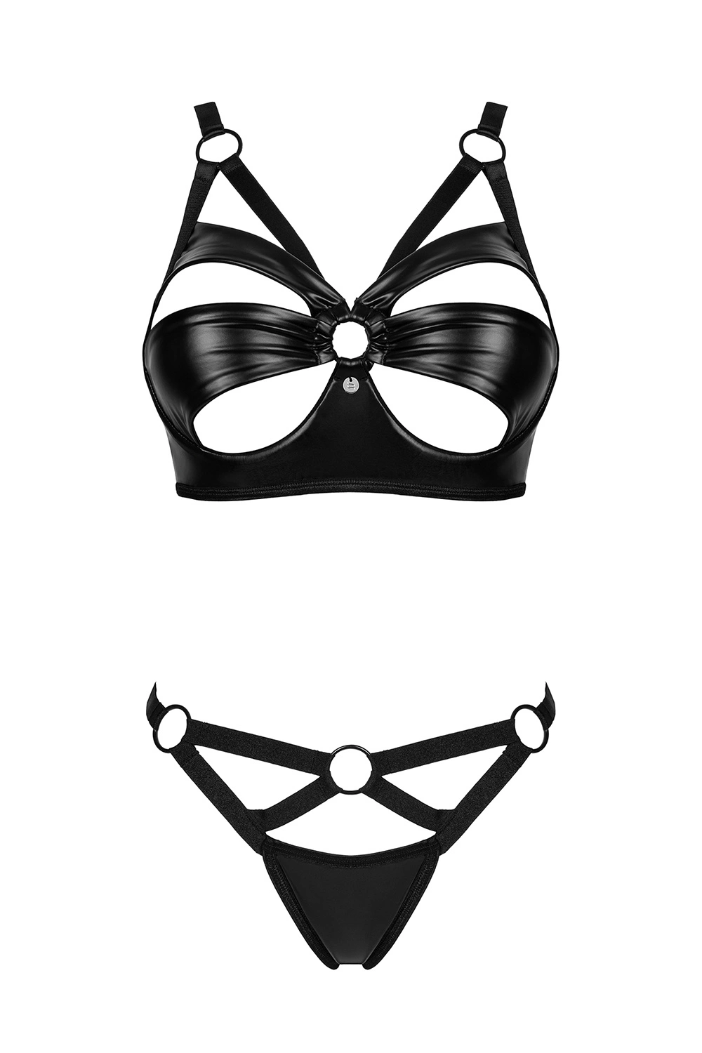 Obsessive Armares 2-pcs set Nocna komplet biustonosz + stringi, czarny
