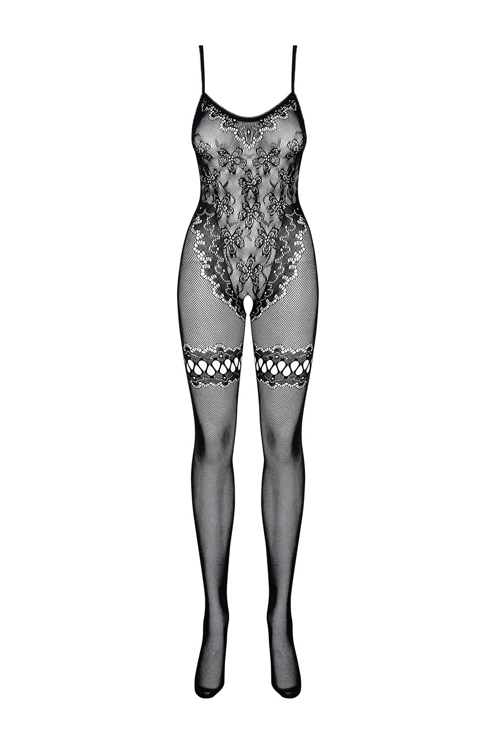 Body marki Obsessive. Model Bodystocking F213. Produkt został wykonany z 90% nylon, 10% elastan. Zalety produktu: sexy z kwiatowym motywem. Bielizna wyróżnia się rozcięciem w kroku. Produkt damski.