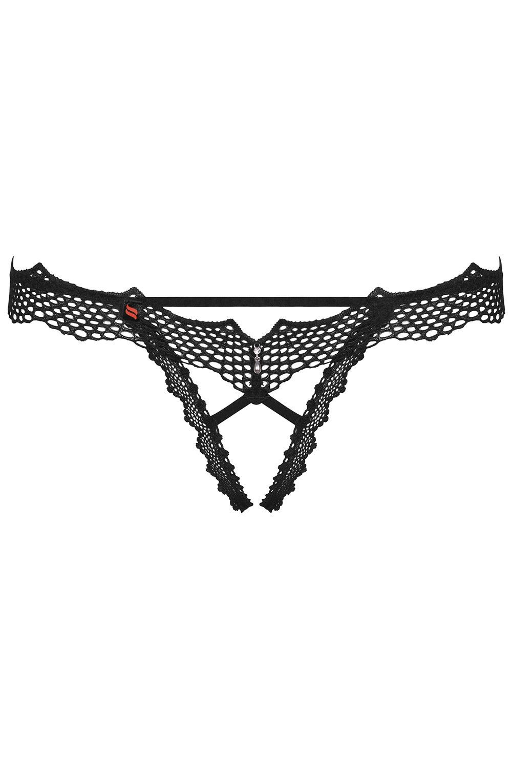 Obsessive Bravelle crotchless thong Majtki stringi otwarte, czarny