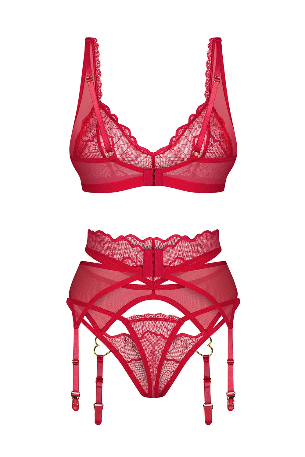 Obsessive Cupide Desir 3-pcs set Nocna komplet biustonosz + stringi + pas do pończoch, red
