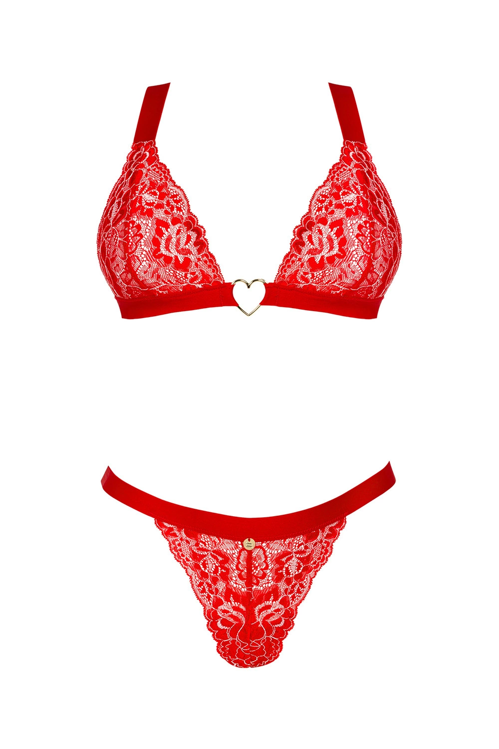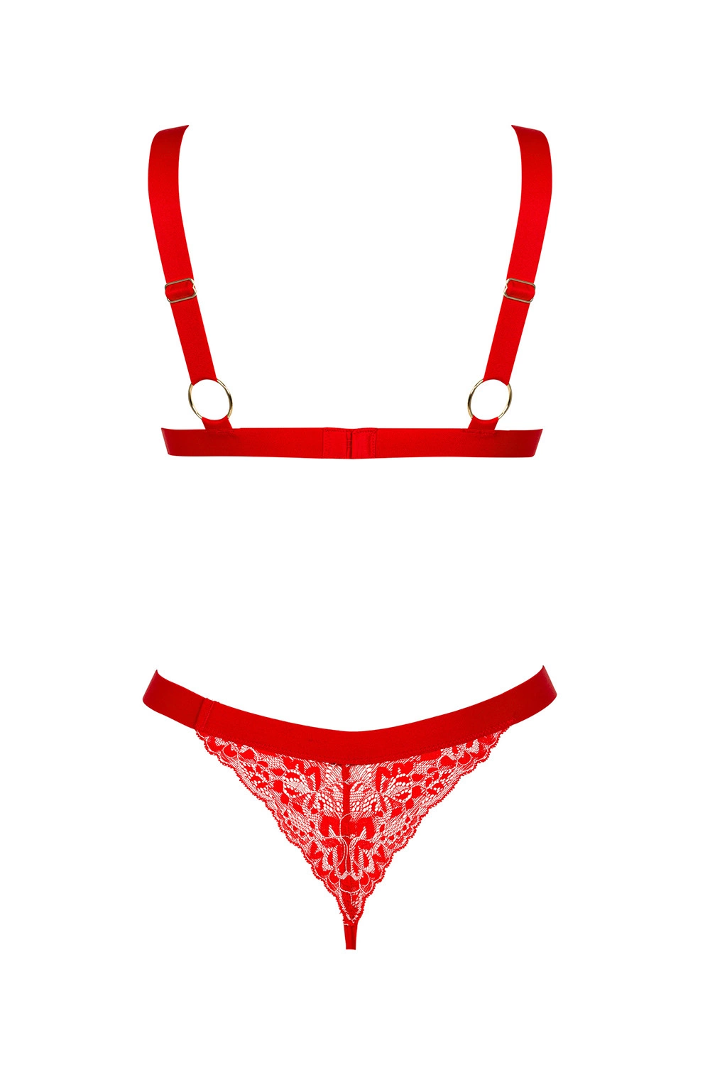 Obsessive Elianes 2-pcs set Nocna komplet biustonosz + stringi, czerwony
