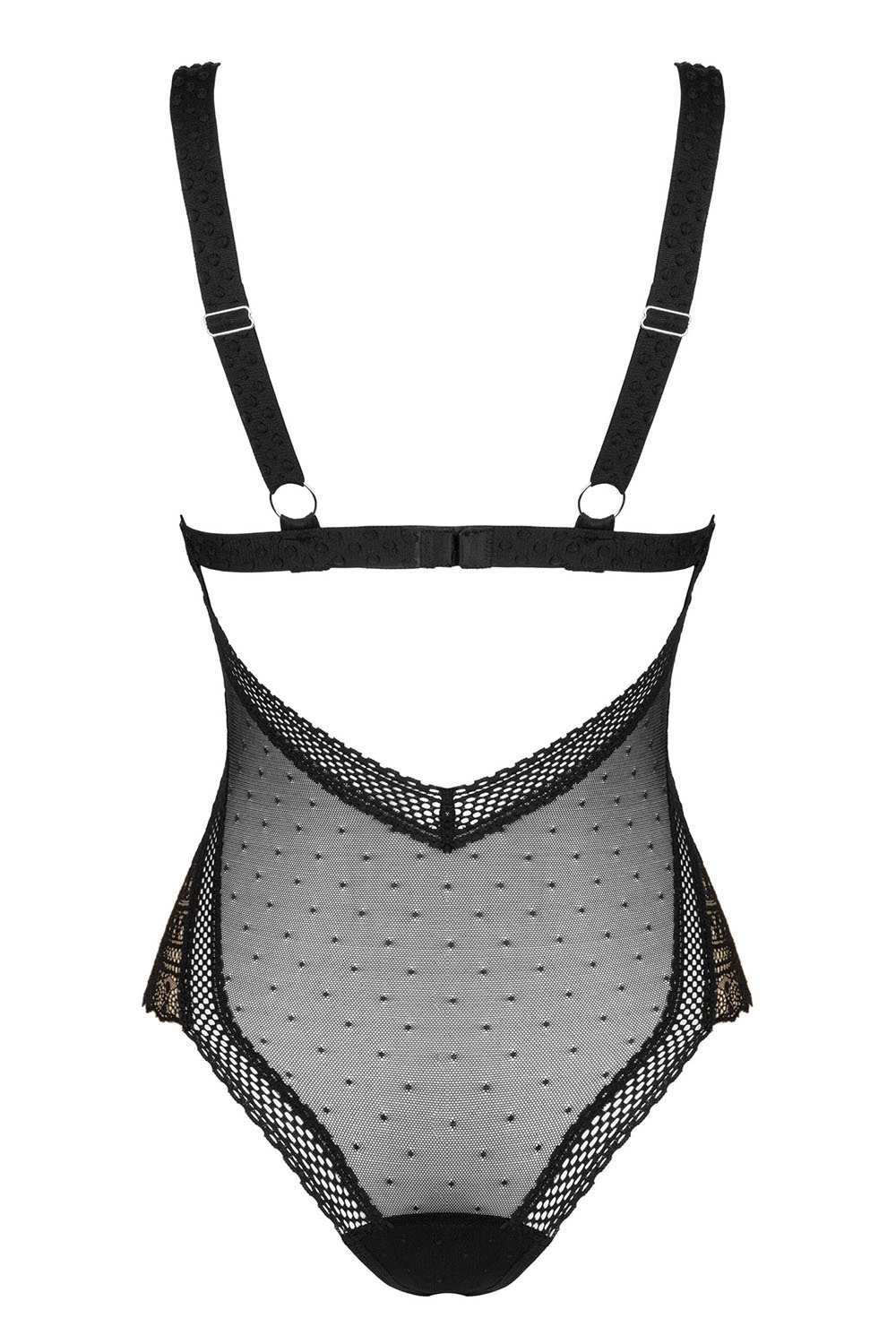 Body marki Obsessive. Model Estiqua teddy. Body zapinany na haftki. Produkt został wykonany z 85% poliamid, 15% elastan. Produkt posiada regulowane ramiączka bez możliwości ich odpięcia. Produkt damski. Miejsce zapięcia: tył.
