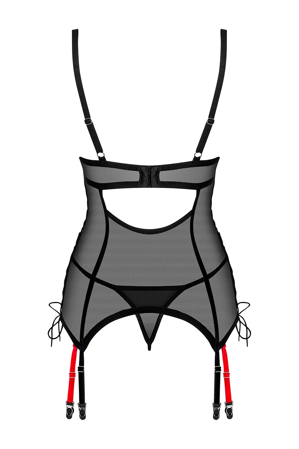 Gorset marki Obsessive. Model Glandez corset. Produkt został wykonany z 94% poliamid, 6% elastan. Miejsce zapięcia: tył. Trzy stopnie haftek poziomych. Gorset zapinany na haftki. Produkt damski. Trzy rzędy haftek pionowych. Produkt posiada regulowane ramiączka. Posiada druty, które podpierają piersi odpowiednio je kształtując. Haczyki do ramiączek metalowe.