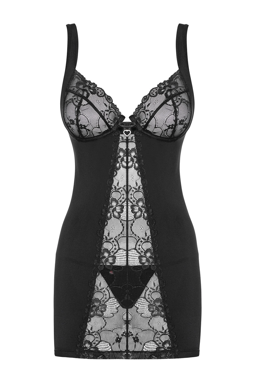 Obsessive Heartina chemise Nocna komplet koszulka + stringi, czarny