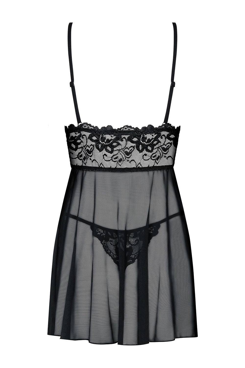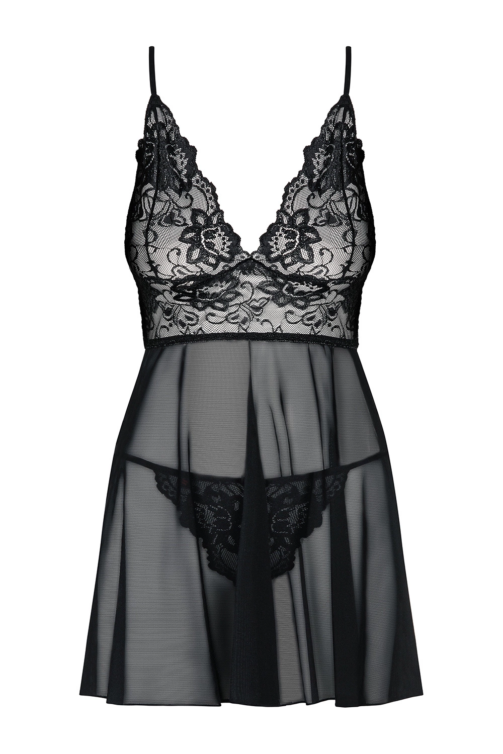 Obsessive Idillia babydoll Nocna komplet koszulka + stringi, black