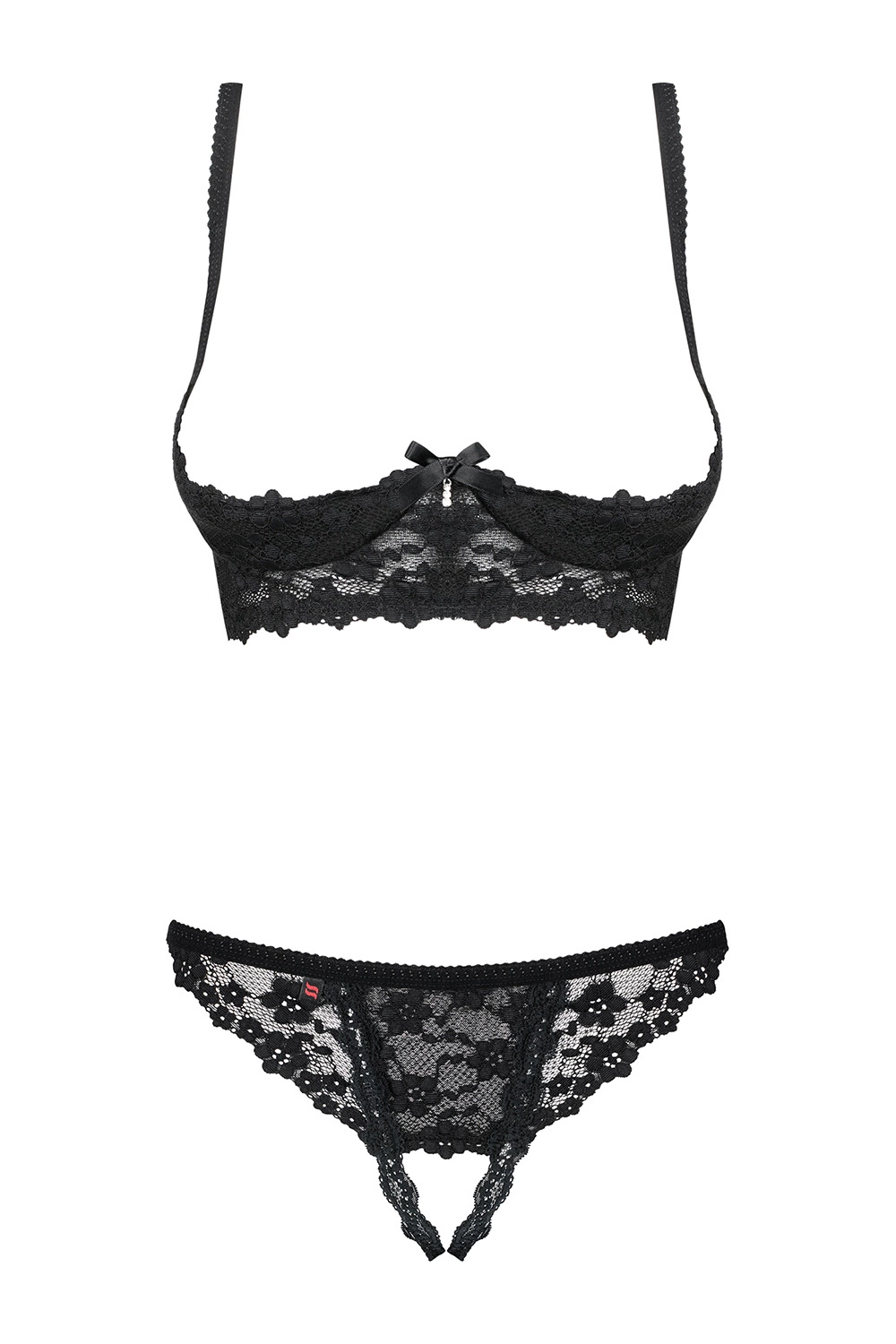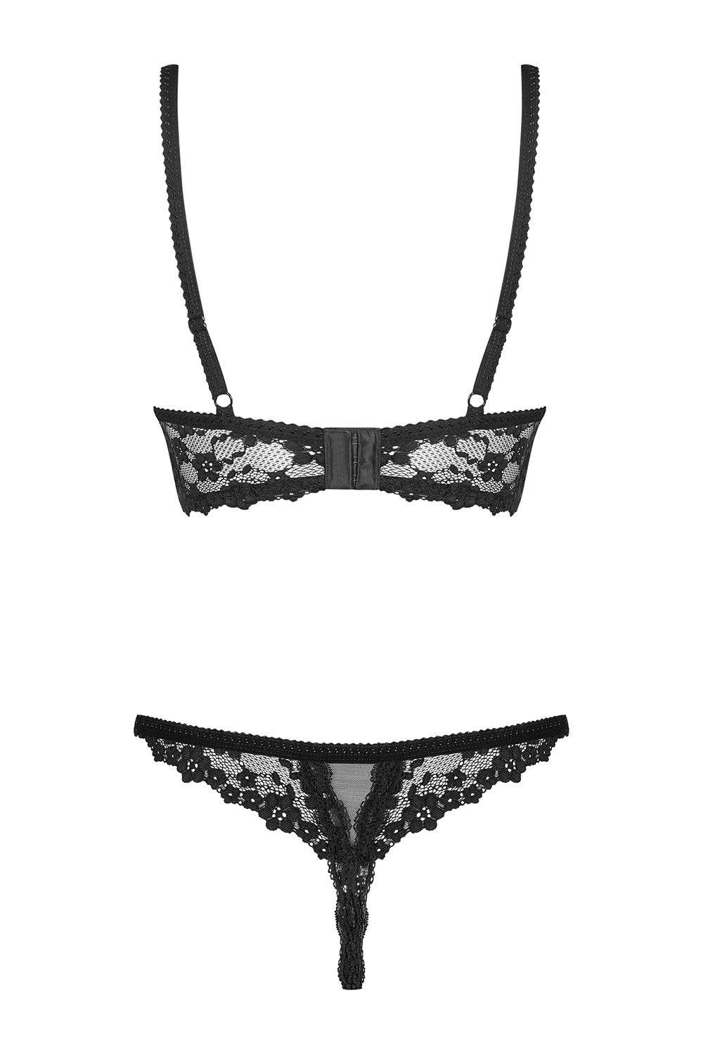 Obsessive Letica Cupless Set Nocna komplet biustonosz + stringi, czarny