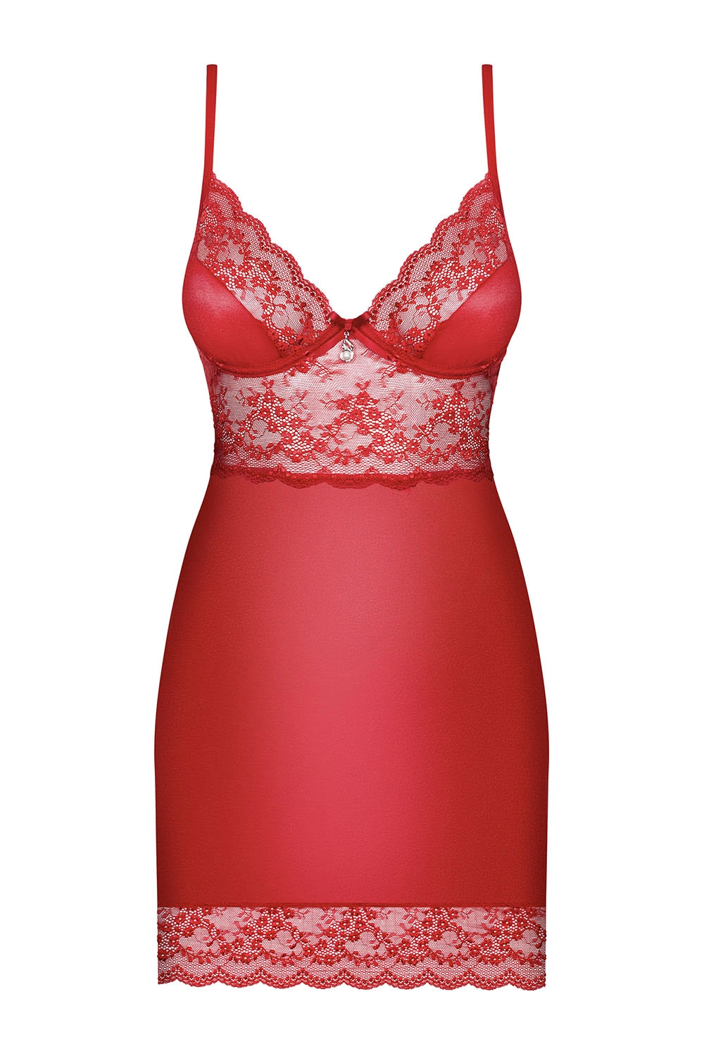 Nocna marki Obsessive. Model Lovica chemise. Produkt został wykonany z 95% poliamid, 5% elastan. Zalety produktu: sexy czerwień walentynki wieczór we dwoje. Posiada druty, które podpierają piersi odpowiednio je kształtując. Produkt posiada regulowane ramiączka. Produkt damski.