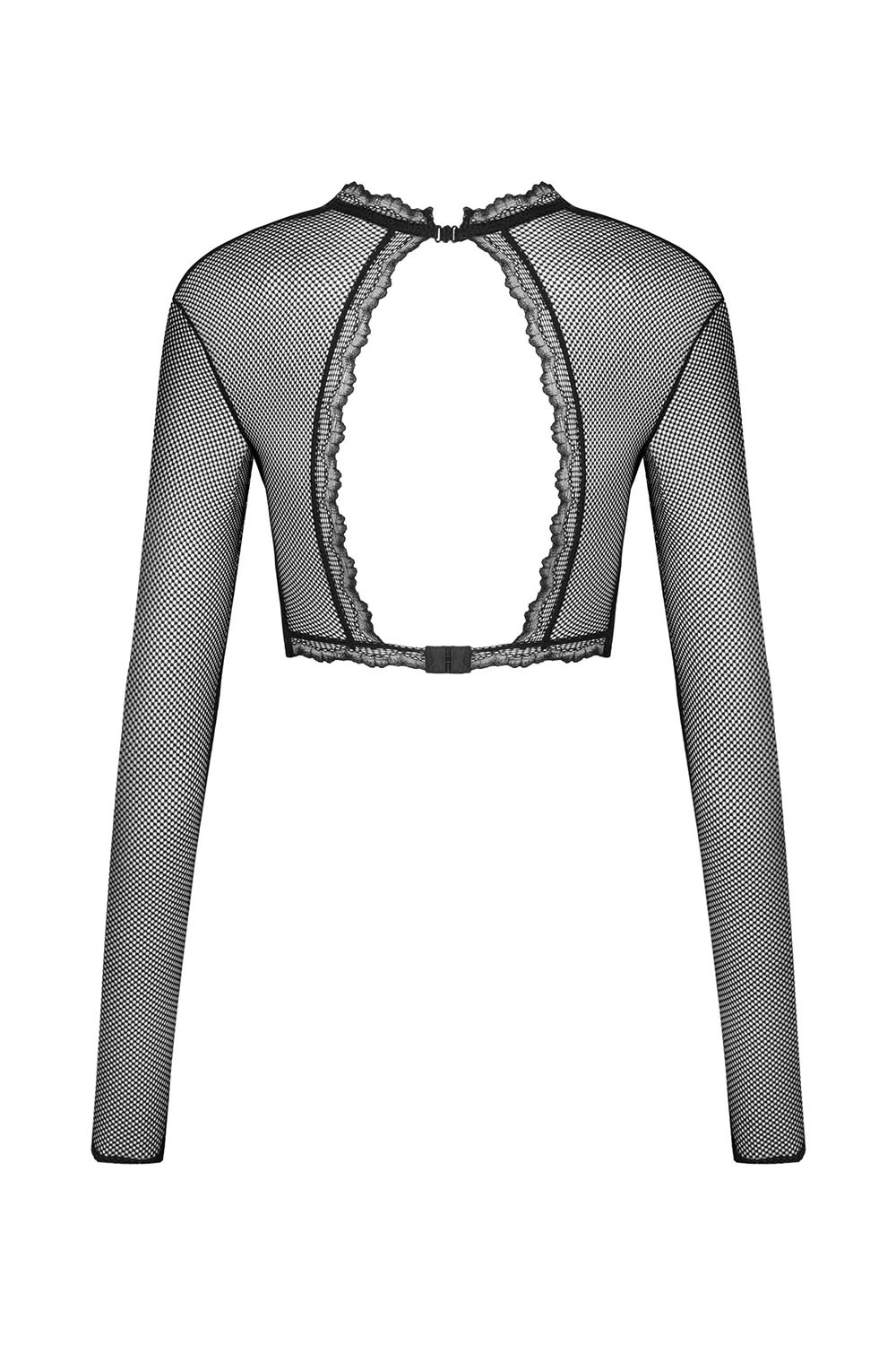 Nocna marki Obsessive. Model Mibelia top. Produkt został wykonany z 85% poliamid, 15% elastan. Długość rękawa: długi rękaw. Nocna zapinany na haftki. Miejsce zapięcia: tył. Produkt damski. Posiada druty, które podpierają piersi odpowiednio je kształtując.