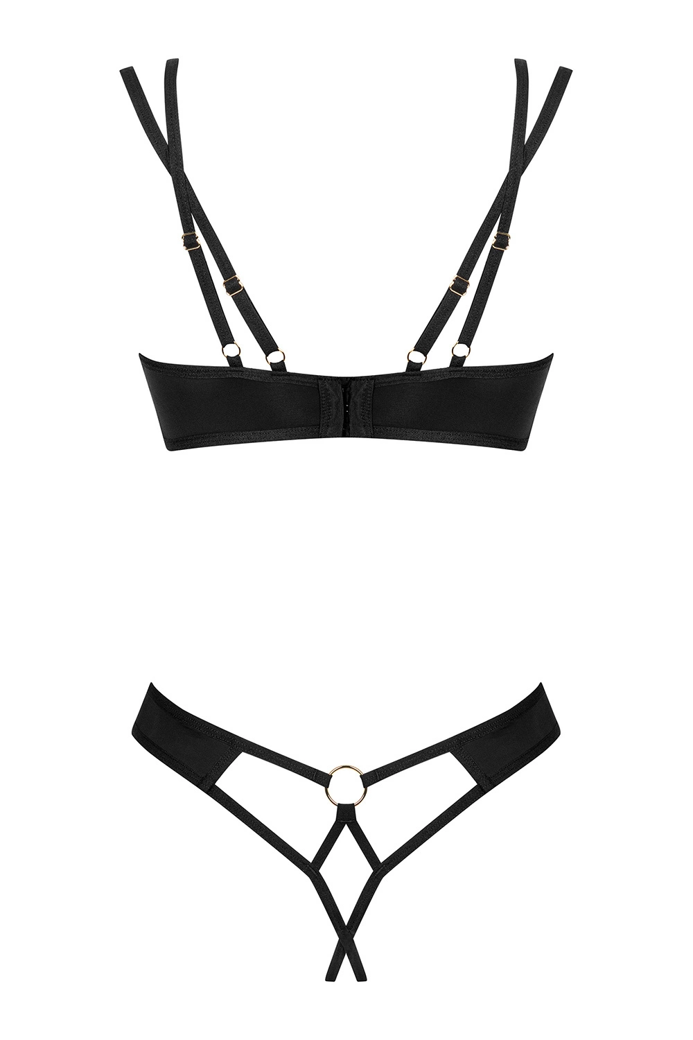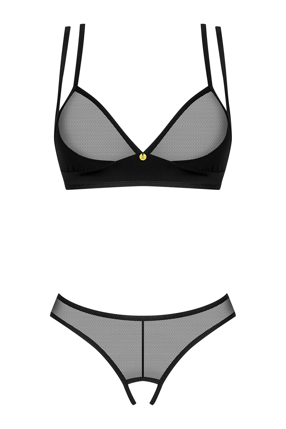 Obsessive Nesari 2-pcs crotchless set Nocna komplet biustonosz + stringi, czarny