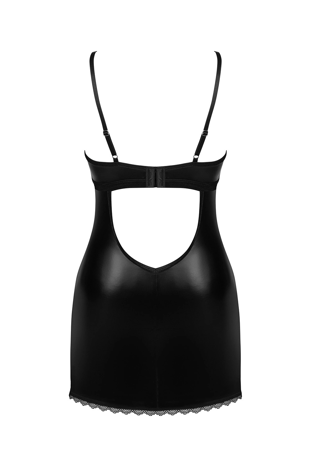 Nocna marki Obsessive. Model Norides chemise. Produkt został wykonany z 100% poliuretan. Nocna zapinany na haftki. Miejsce zapięcia: tył. Produkt damski. Posiada druty, które podpierają piersi odpowiednio je kształtując.