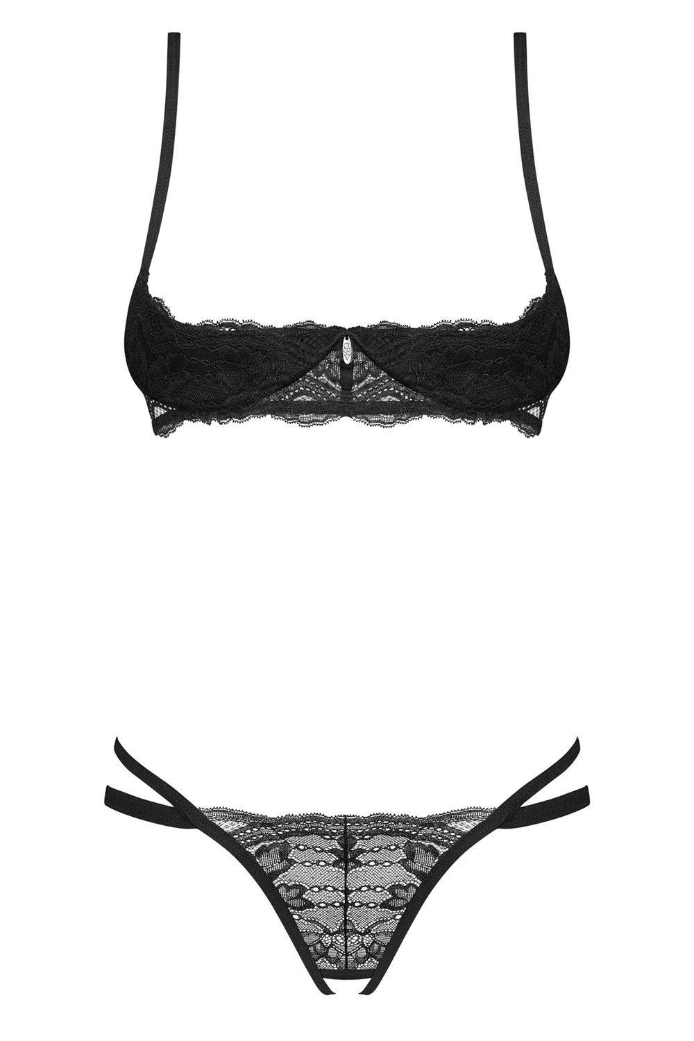 Obsessive Nutris 2-pcs crotchless set Nocna komplet biustonosz + stringi, czarny